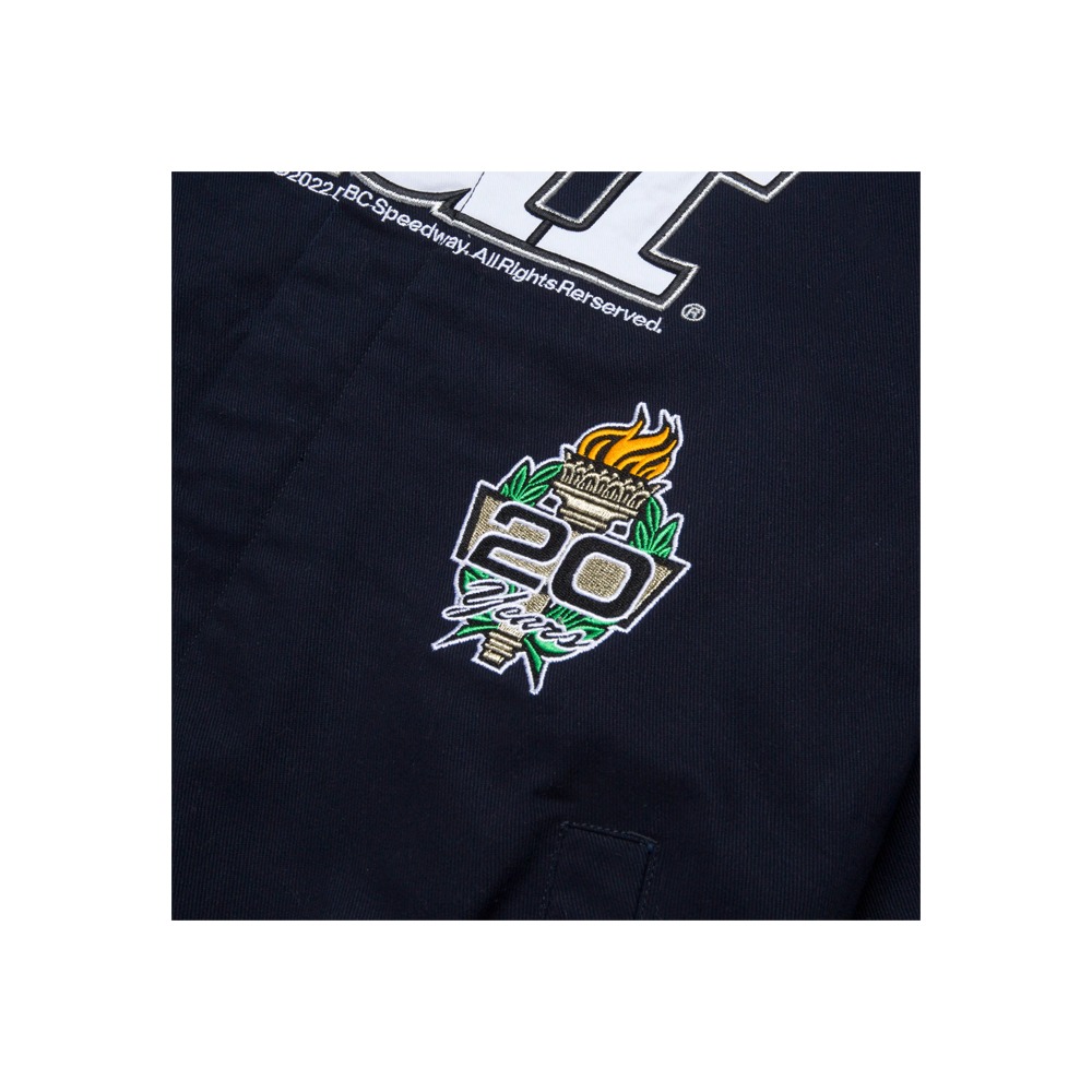Ispirata ai modelli vintage degli sport motoristici, la giacca Daytona è realizzata in twill di cotone trattato con un rivestimento resistente alle intemperie ed è proposta in una silhouette a blocchi di colore per un’atmosfera retrò. Tagliata con una zip intera anteriore e un’abbottonatura antivento con bottoni automatici, la giacca presenta un’opera d’arte influenzata dalle corse in applicazioni in twill da attrezzatura e ricami diretti su tutta la superficie.