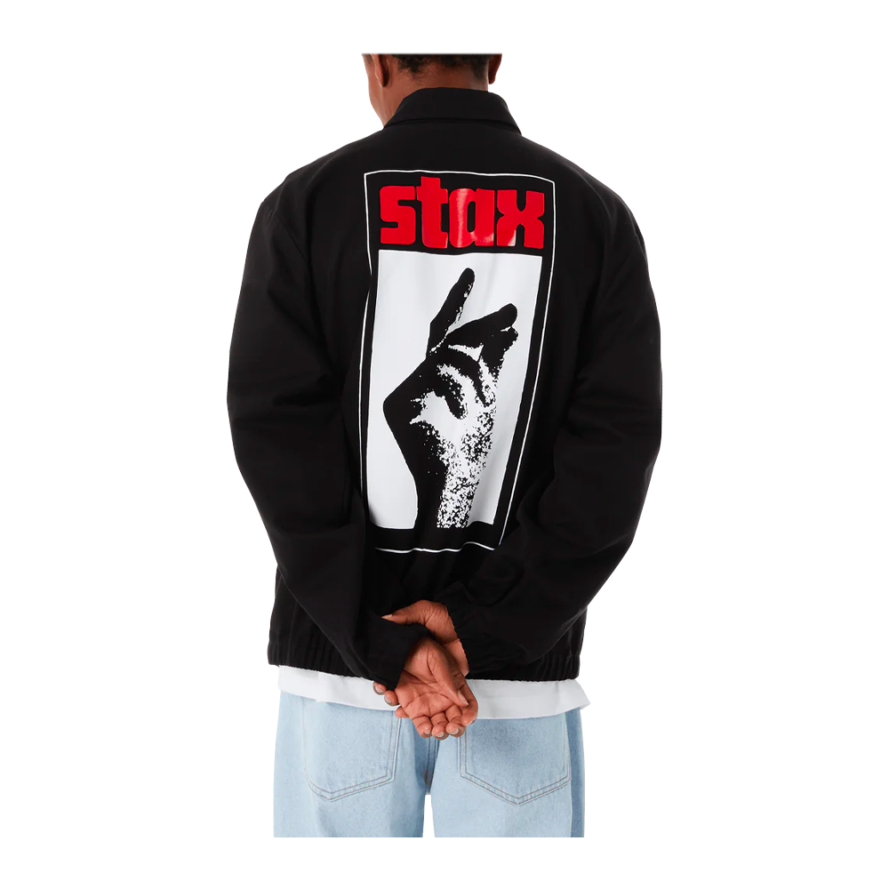 Founded in 1961, Stax Records’ independent ethos put Memphis and Southern Soul on the map. A groundbreaking label that broke color lines, the Stax Jacket celebrates a legacy with a cotton twill shop jacket featuring their iconic logo and clean HUF branding.