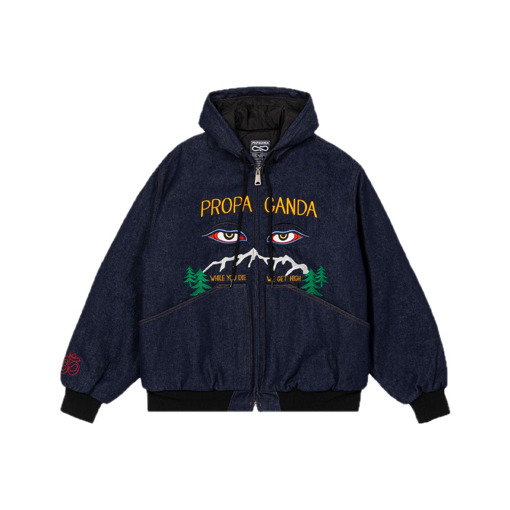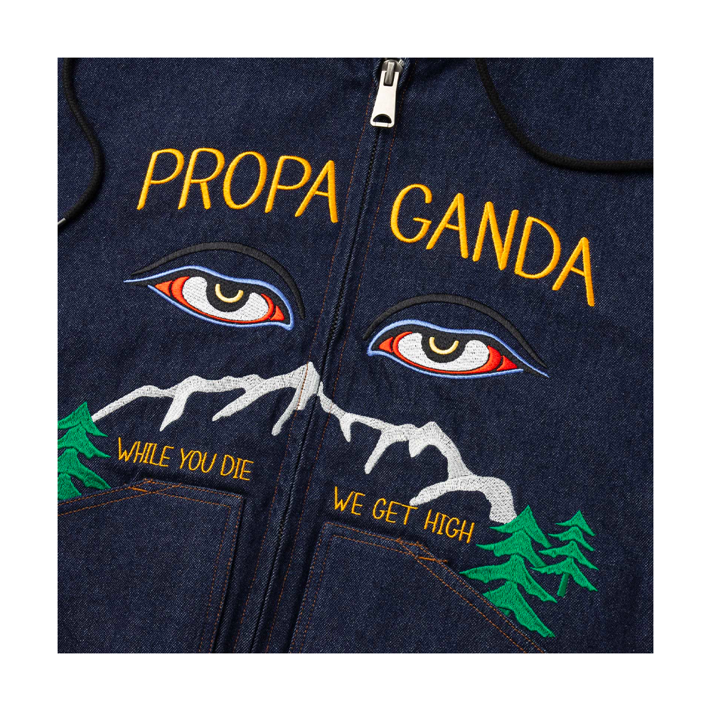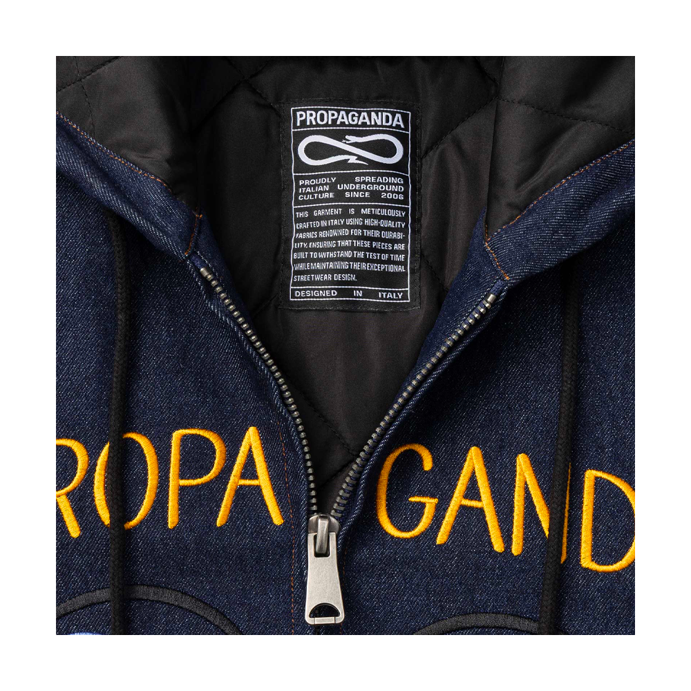 Propaganda hooded jacket with embroidery on the front and back.