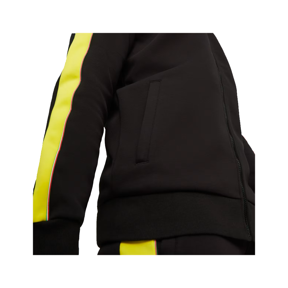 Un’originale PUMA, la collezione ispirata alla pista T7 si è fatta un nome con le strisce distintive da 7 cm ed è diventata rapidamente popolare tanto nelle strade cittadine quanto nei campi di allenamento. Nascosto nei nostri archivi, l’abito è stato replicato fedelmente ed è iconico oggi come lo era allora. Con strisce sulle maniche e una vestibilità elegante, questa giacca sportiva Scuderia Ferrari ti farà riportare i classici con stile.