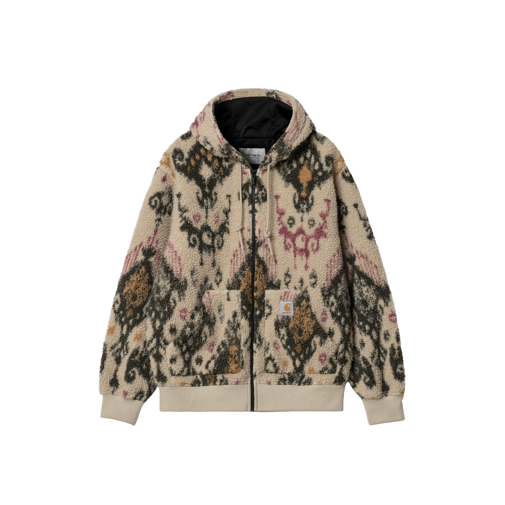 La Carhartt WIP OG Active Liner è ispirata alla OG Active Jacket ed è realizzata in pesante pile di poliestere. Alcune versioni della giacca sono tinta unita, altre sono caratterizzate da un guscio in jacquard impreziosito da un motivo stagionale. All’interno, il corpo è foderato in rete, le maniche in taffetà di nylon. La giacca è inoltre dotata di cappuccio regolabile e presenta orlo e polsini in maglia a coste. Rifiniscono il modello una tasca a marsupio e un’etichetta quadrata in tessuto sul davanti.