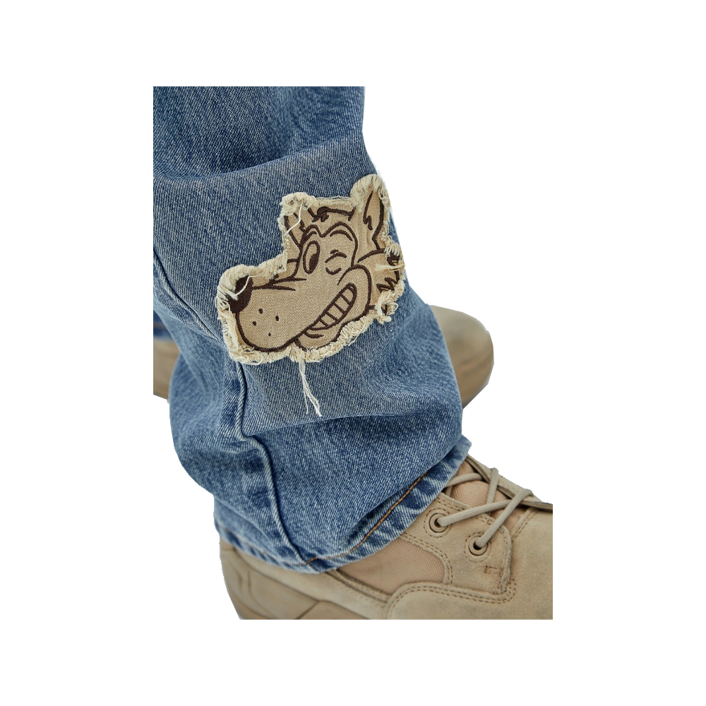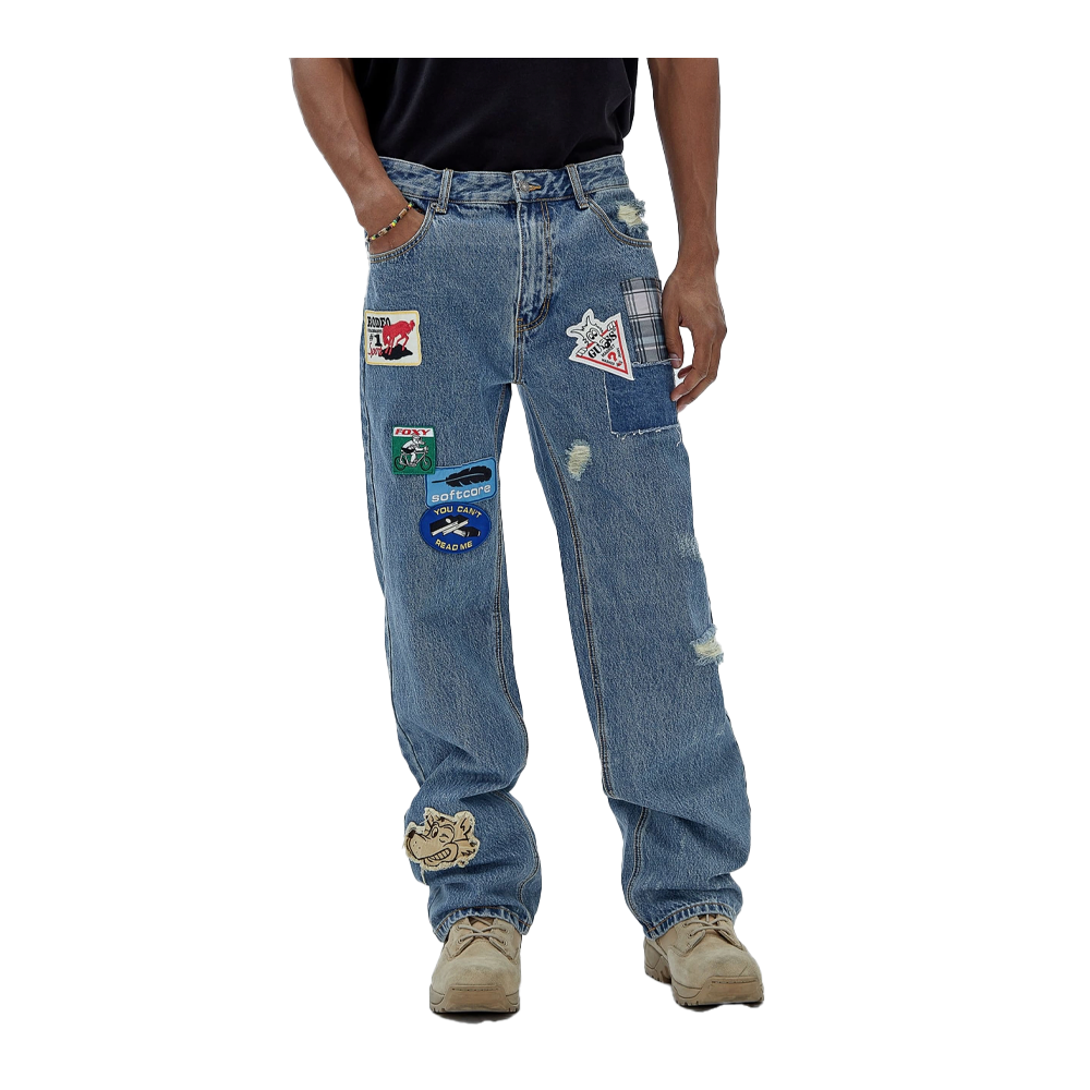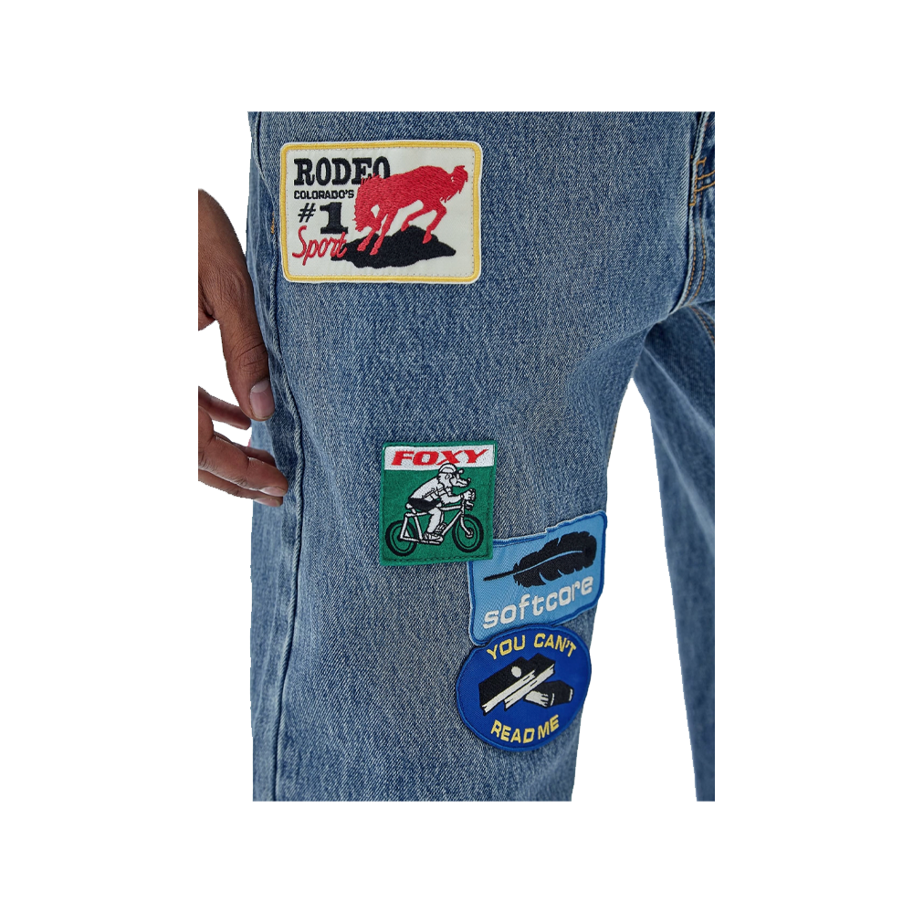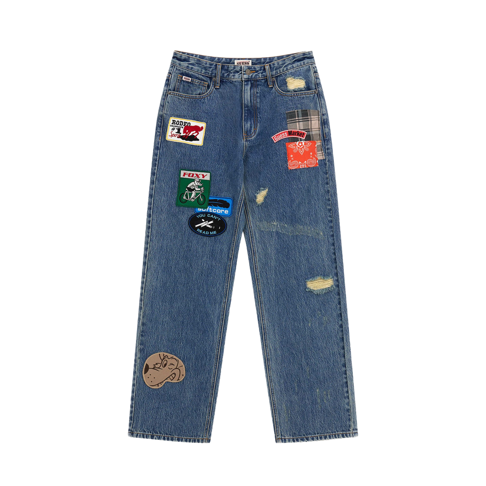 Denim Guess Originals x Market Capsule trousers which feature fantastic Patches sewn all over the garment which make it unique in its style.