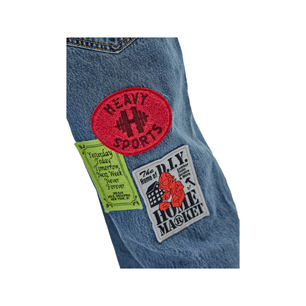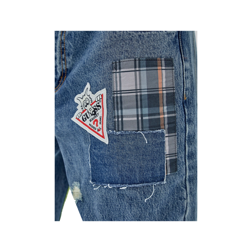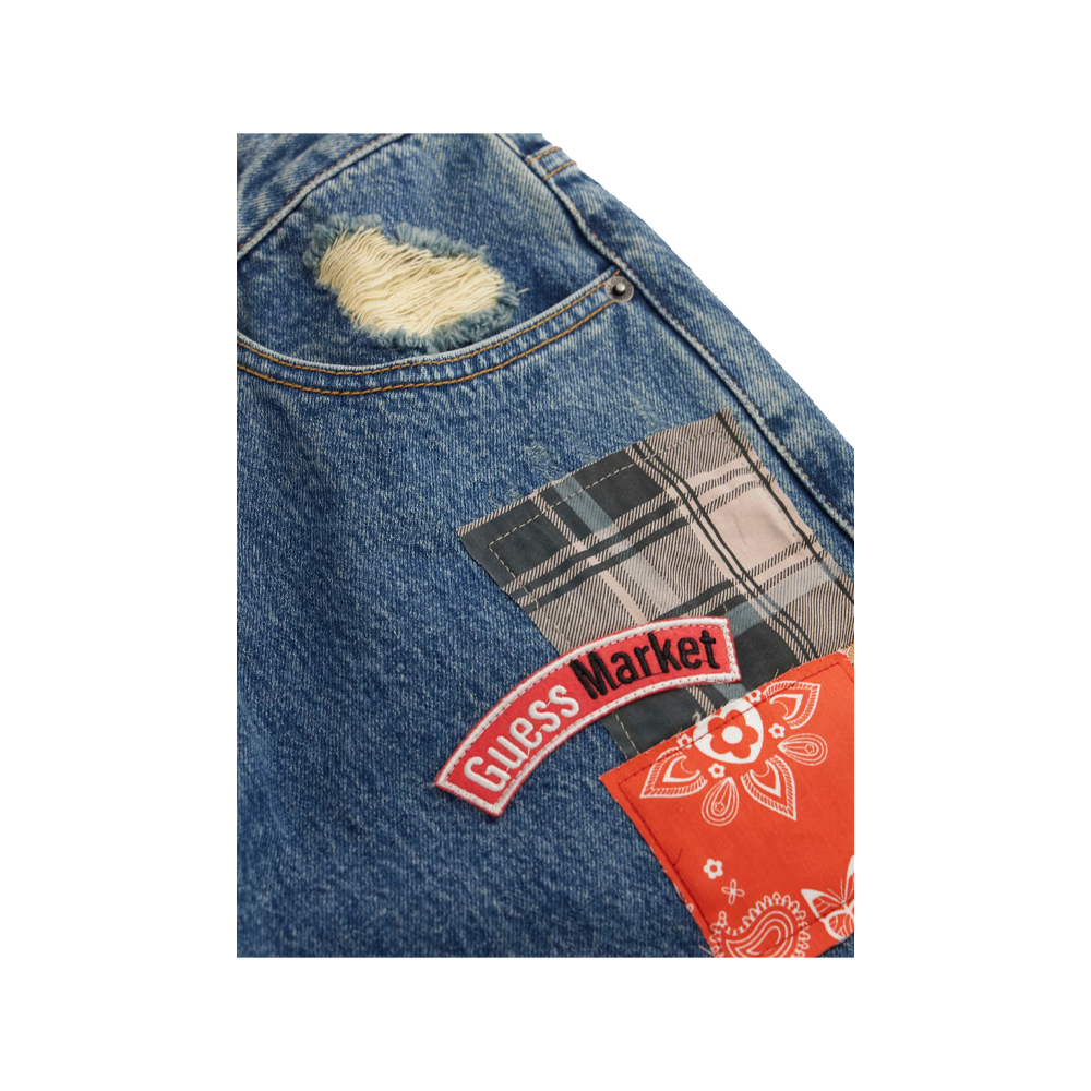 Pantalone Denim Guess Originals x Market Capsule che presenta fantastiche Patchs cucite su tutto il capo che lo rendono unico nel suo stile.