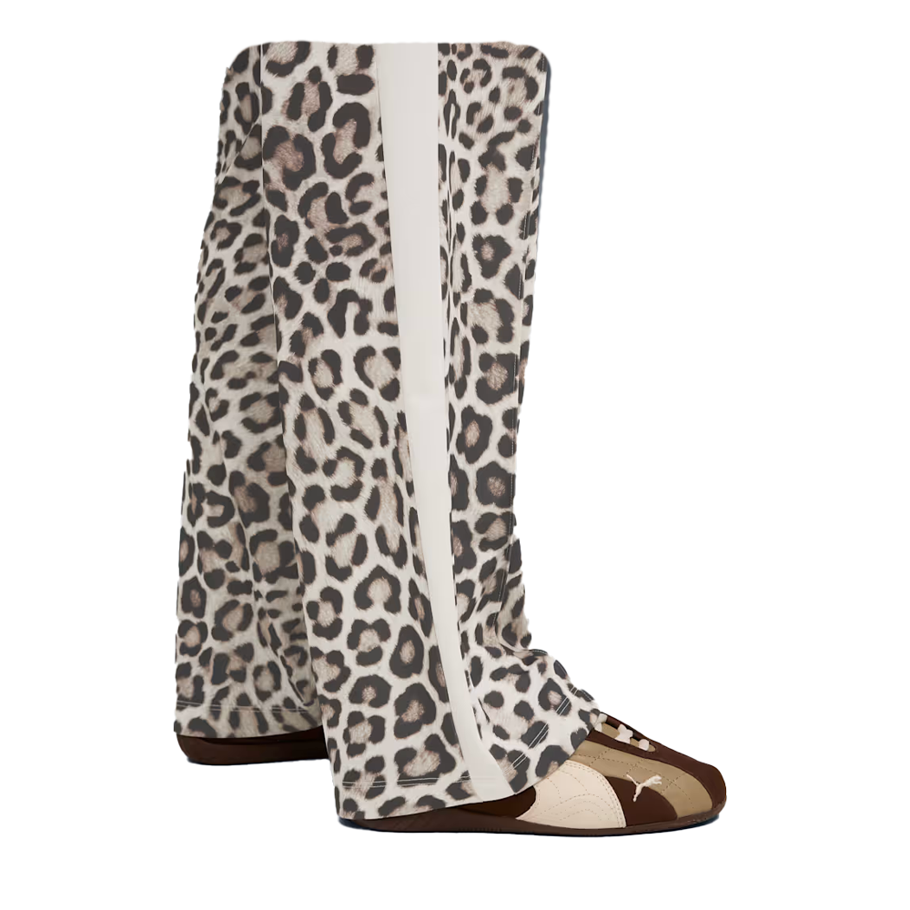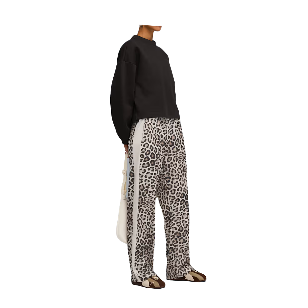 Step into the wild with the Puma Leopard Print Track Pants. Featuring T7 panel inserts, a ribbed waistband with internal drawcord and embroidered Cat Logo, these pants are designed for those who dare to stand out. Unleash your inner feline and make your mark.