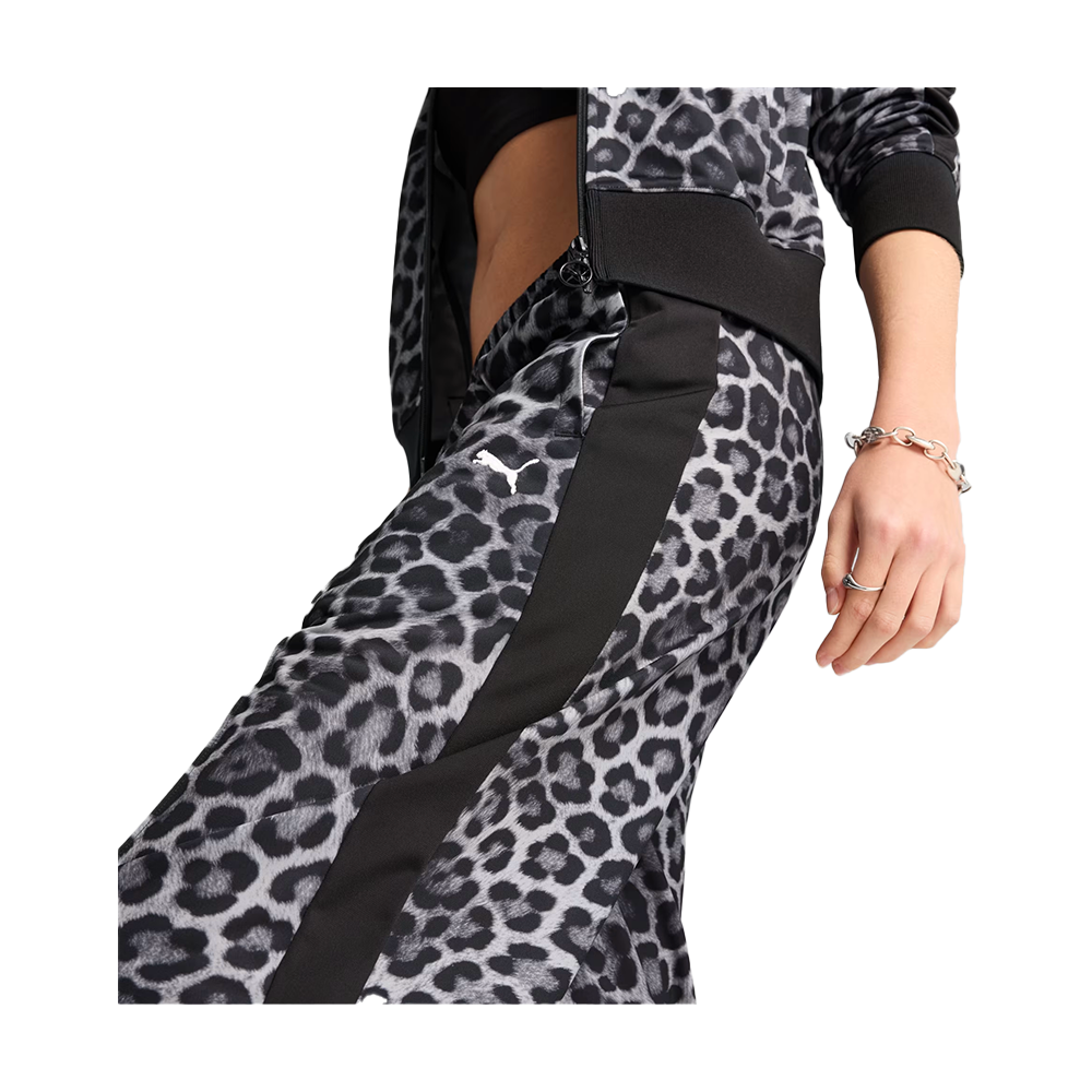 Step into the wild with the Puma Leopard Print Track Pants. Featuring T7 panel inserts, a ribbed waistband with internal drawcord and embroidered Cat Logo, these pants are designed for those who dare to stand out. Unleash your inner feline and make your mark.