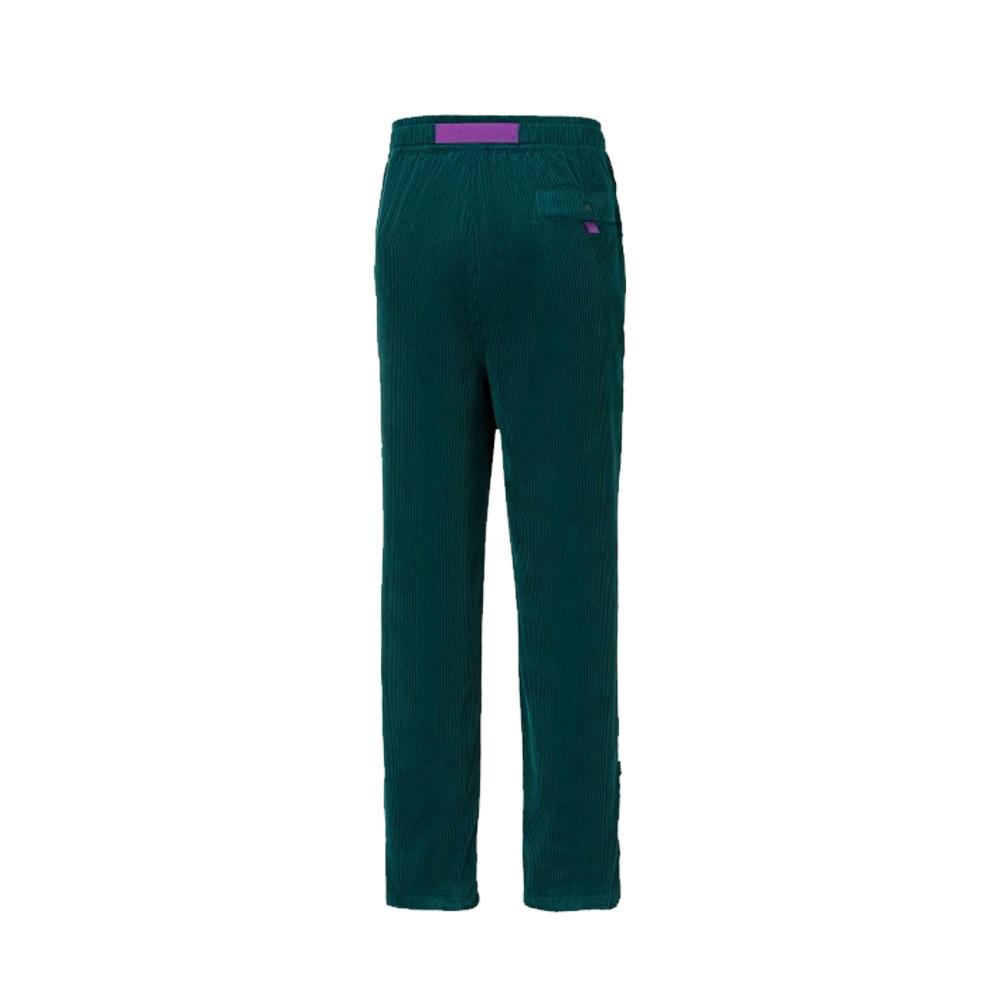 Puma e Butter Goods si sono uniti e hanno lanciato un classico paio di pantaloni. I pantaloni in velluto a coste sono realizzati in cotone e hanno un taglio morbido. Oltre a un elastico in vita con cintura in nylon incorporata, i pantaloni sono dotati di tasche laterali ed una tasca posteriore con chiusura a scatto. Il design è completato da un marchio Puma e Butter Goods ricamato sul davanti.