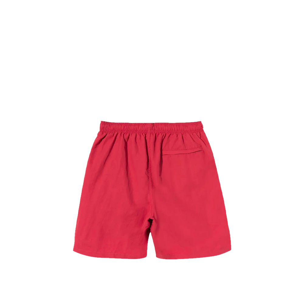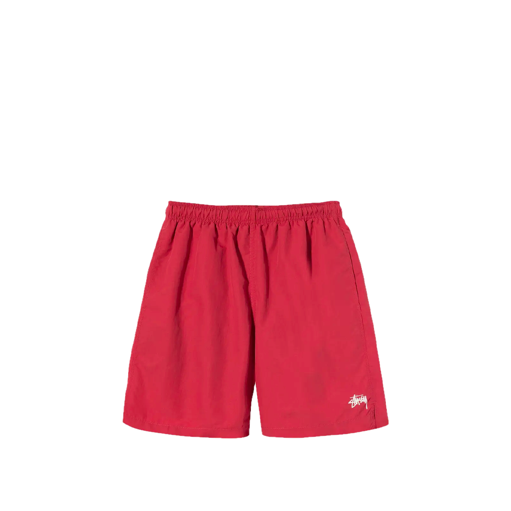 Classic Water Short by Stussy with elastic waistband, internal drawstring and mesh briefs. Two front seam pockets and one rear welt pocket with zip closure. Screen-printed logo on the left leg.