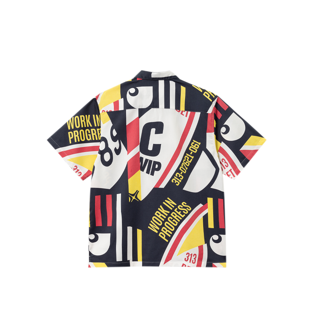 The Carhartt WIP S/S Marina Shirt is made in a loose fit from fluid cotton-lyocell fabric that has been garment-washed for a softer feel. It also features an allover abstract motif inspired by boat sail graphics. The shirt is detailed with a camp collar, a buttoned front, and a chest pocket.
