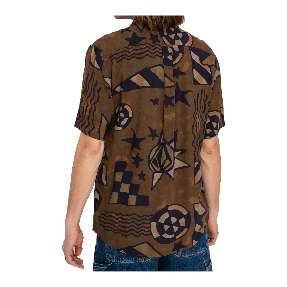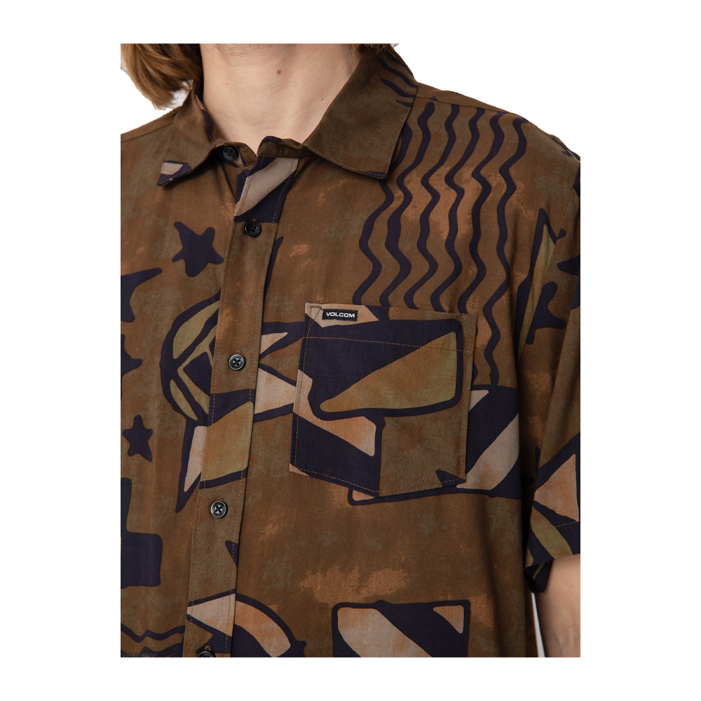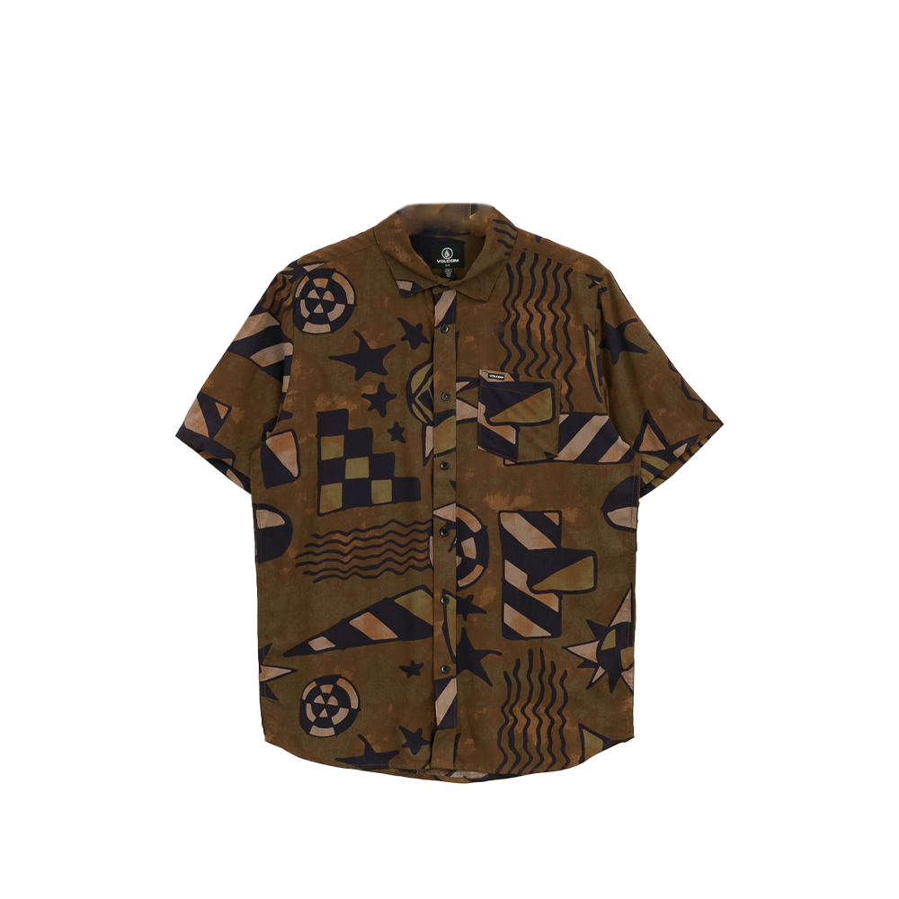 La camicia a maniche corte da uomo di Volcom presenta una tasca applicata sul petto e ricami con pietre.