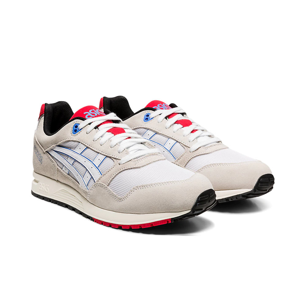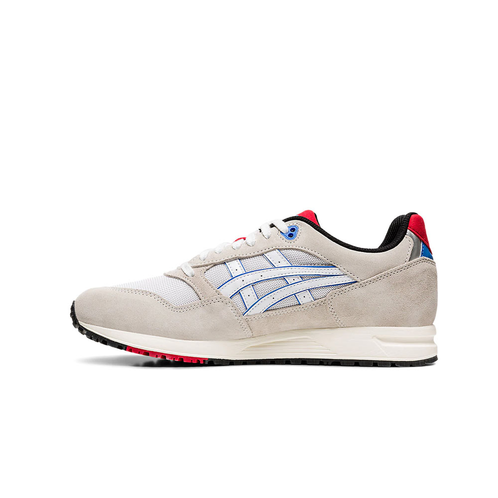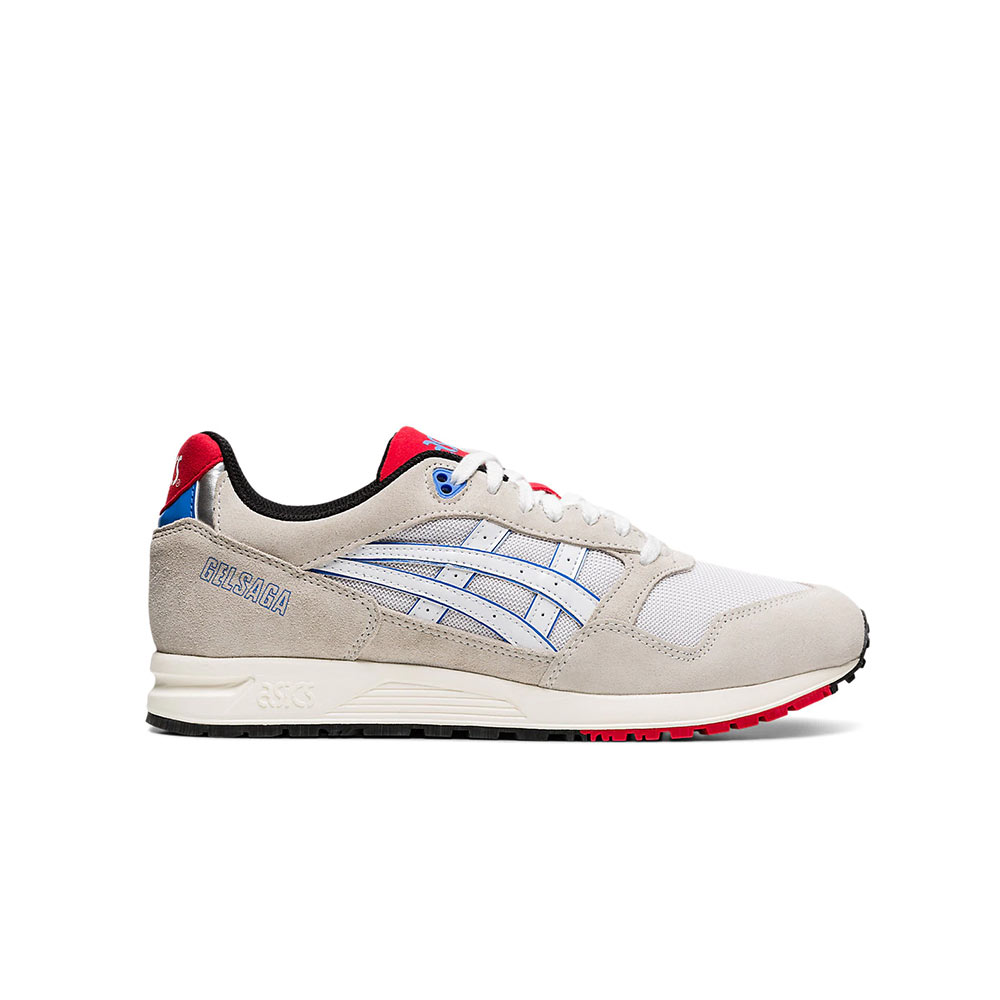 Lascia che ASICS impreziosisca il tuo stile da strada insieme a queste sneaker bianche, grigie e blu. Sono realizzate in morbida pelle scamosciata e tomaia in mesh, con il logo ricamato e la scritta stampata “GELSAGA” sui lati. Verso il fondo, l’etichetta aggiunge la tecnologia GEL ed EVA alla intersuola, progettata per attutire ergonomicamente i piedi ad ogni passo.