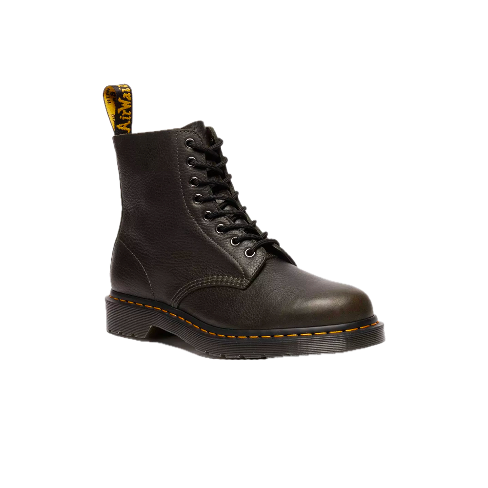 A softer take on a classic. The Dr. Martens 1460 8-eye Pascal boot is recoloured and rebuilt with forest green Ambassador leather that’s relaxed right out the box. We added black laces and silver eyelets alongside our instantly recognisable DM’s detailing: a scripted heel loop, yellow welt stitching and trans DMS sole with classic grooving.