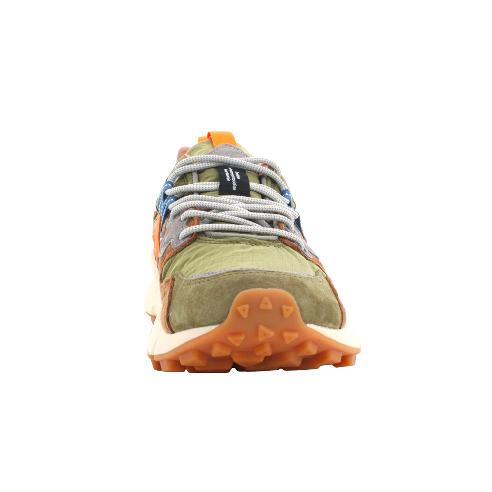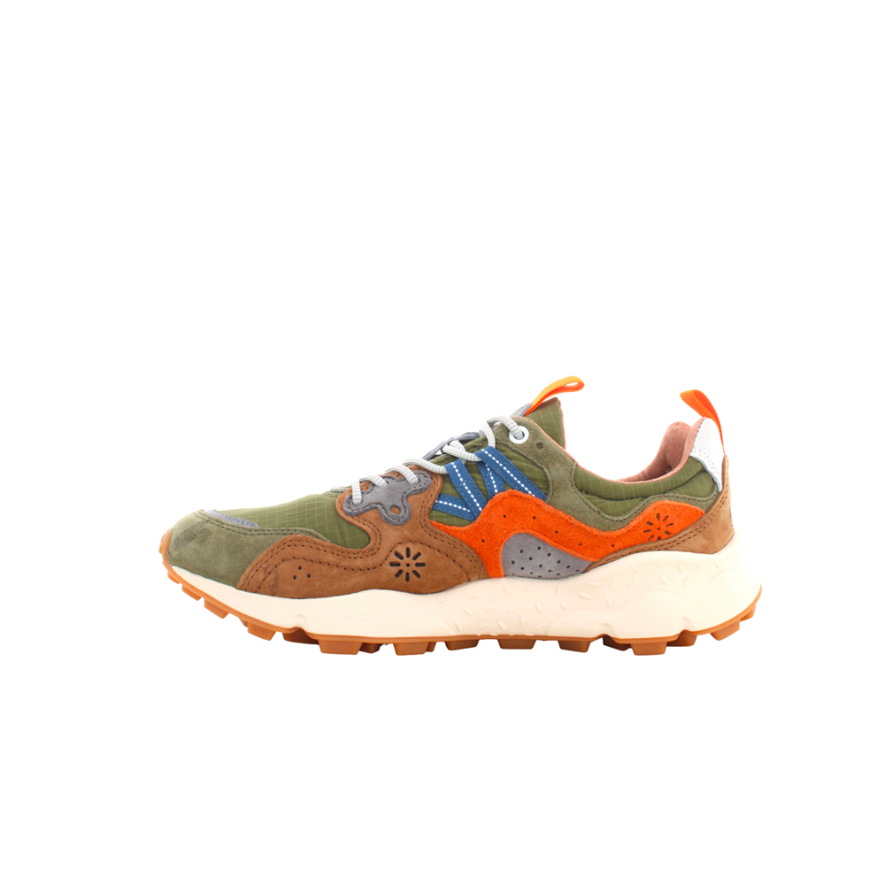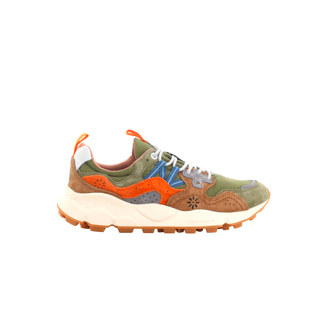 The Flower Mountain M’ Yamano 3 Uni combine bold style and maximum comfort in a design inspired by nature and the outdoors. The leopard-print suede upper, combined with technical fabric details, gives a distinctive and contemporary look. The fit is comfortable and enveloping thanks to the padded tongue and the closure with reinforced laces. The interior is lined with antibacterial and breathable material, with a natural cork insole that ensures freshness and comfort all day long. The ultra-light rubber sole, with a shaped tread, guarantees stability and grip on any surface. Perfect for those looking for a versatile sneaker, with a dynamic and urban spirit, without sacrificing the elegance of the details.