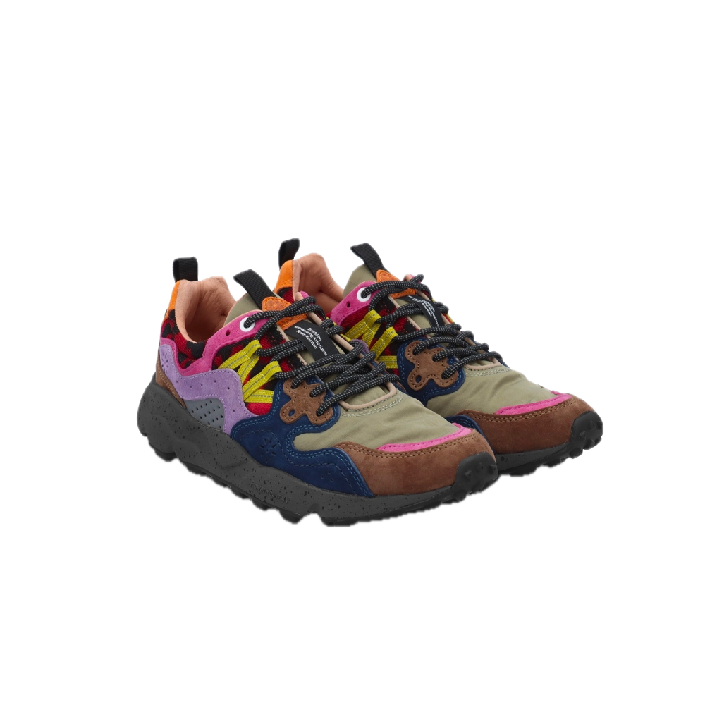 The Flower Mountain W’ Yamano 3 Uni combine bold style and maximum comfort in a design inspired by nature and the outdoors. The suede upper, combined with technical fabric details, gives a distinctive and contemporary look. The fit is comfortable and enveloping thanks to the padded tongue and the closure with reinforced laces. The interior is lined with antibacterial and breathable material, with a natural cork insole that ensures freshness and comfort all day long. The ultra-light rubber sole, with a shaped tread, guarantees stability and grip on any surface. Perfect for those looking for a versatile sneaker, with a dynamic and urban spirit, without sacrificing the elegance of the details.