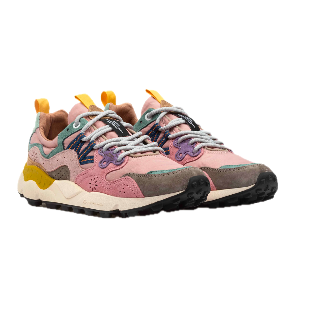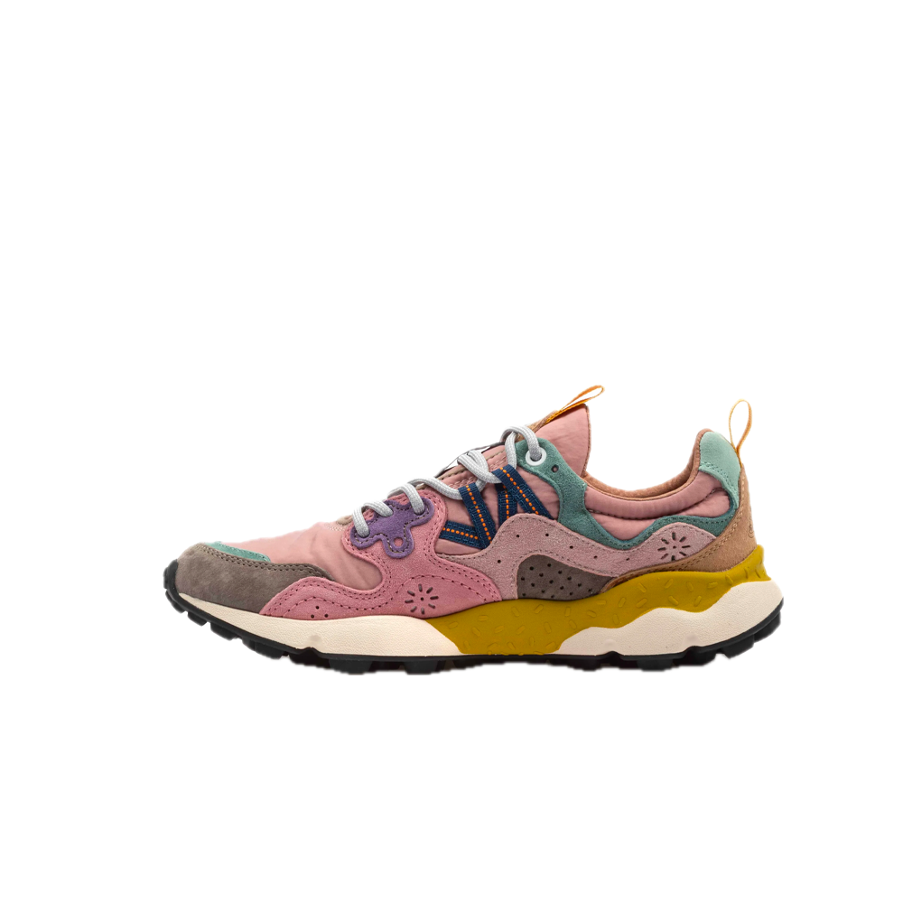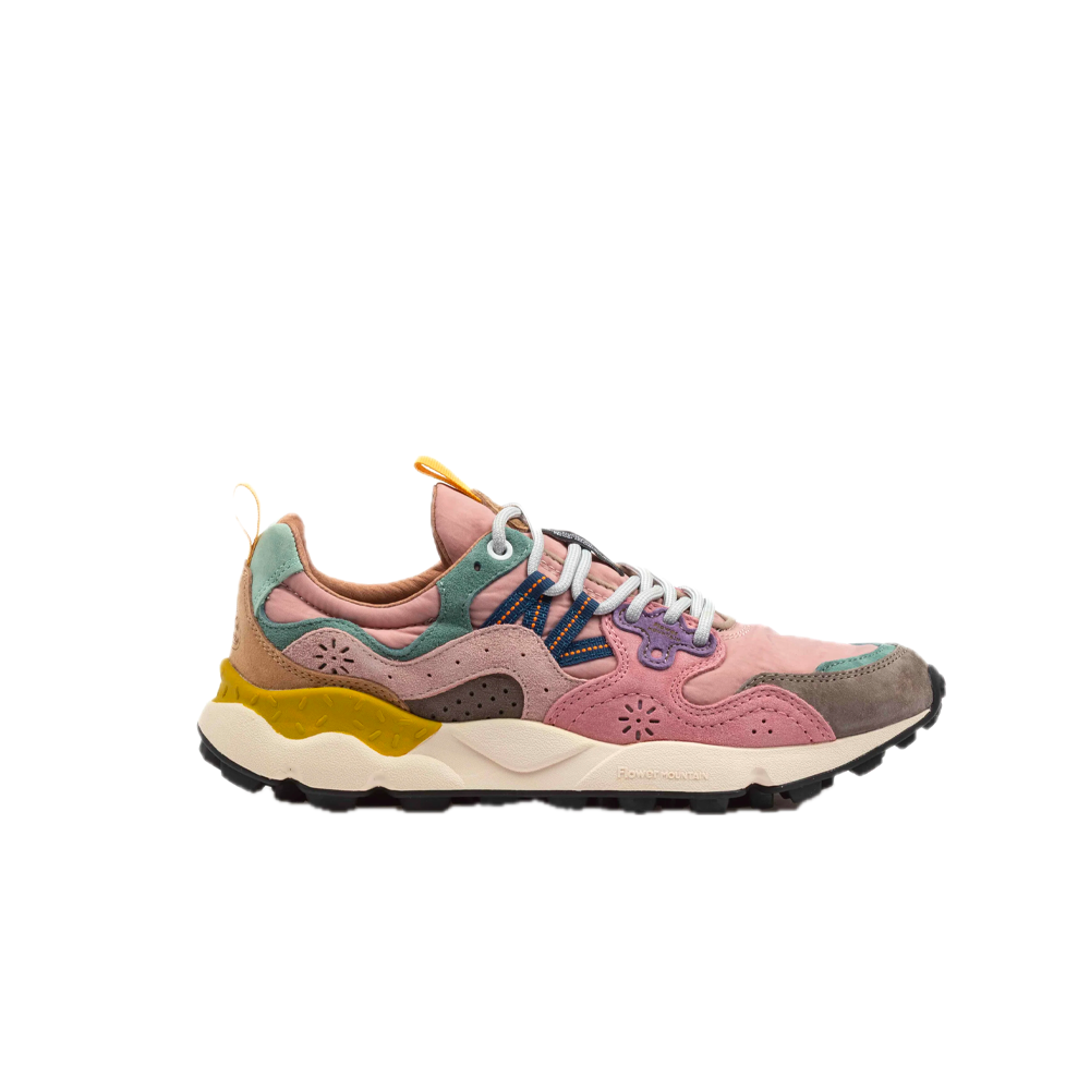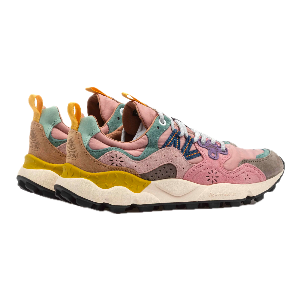 The Flower Mountain W’ Yamano 3 Uni combine bold style and maximum comfort in a design inspired by nature and the outdoors. The suede upper, combined with technical fabric details, gives a distinctive and contemporary look. The fit is comfortable and enveloping thanks to the padded tongue and the closure with reinforced laces. The interior is lined with antibacterial and breathable material, with a natural cork insole that ensures freshness and comfort all day long. The ultra-light rubber sole, with a shaped tread, guarantees stability and grip on any surface. Perfect for those looking for a versatile sneaker, with a dynamic and urban spirit, without sacrificing the elegance of the details.