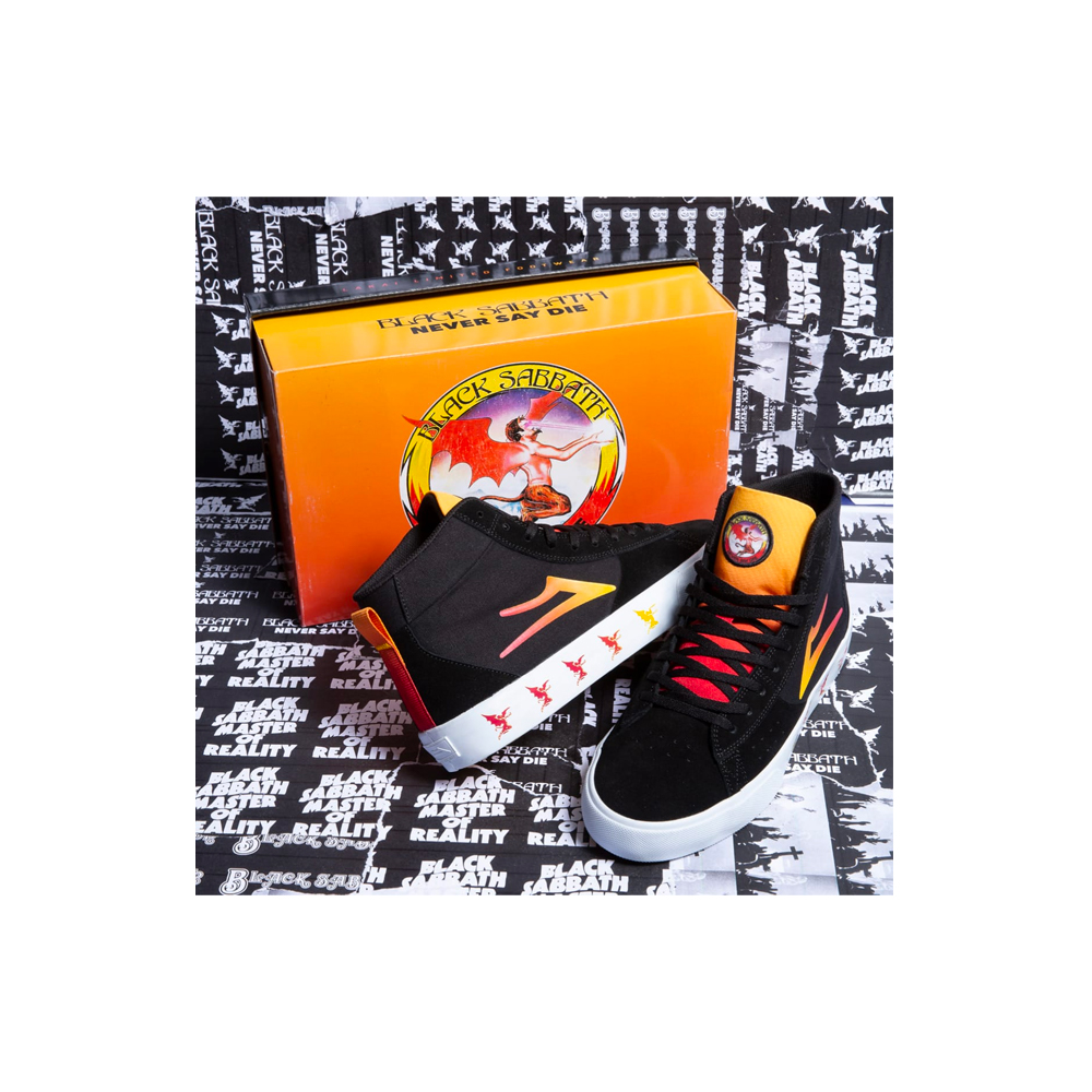 Le scarpe Lakai x Black Sabbath Newport sono con una collaborazione speciale tra Lakai e la leggendaria band, i Black Sabbath. Questa scarpa alta è facile da indossare con una tomaia in pelle scamosciata, un battistrada esagonale flessibile per una corretta sensazione sulla tavola e suola PARA–MOUNT per un’ammortizzazione extra. I dettagli dei Sabbath tratti dal loro album Never Say Die possono essere trovati sul fianco, sulla lingua e sulle solette.