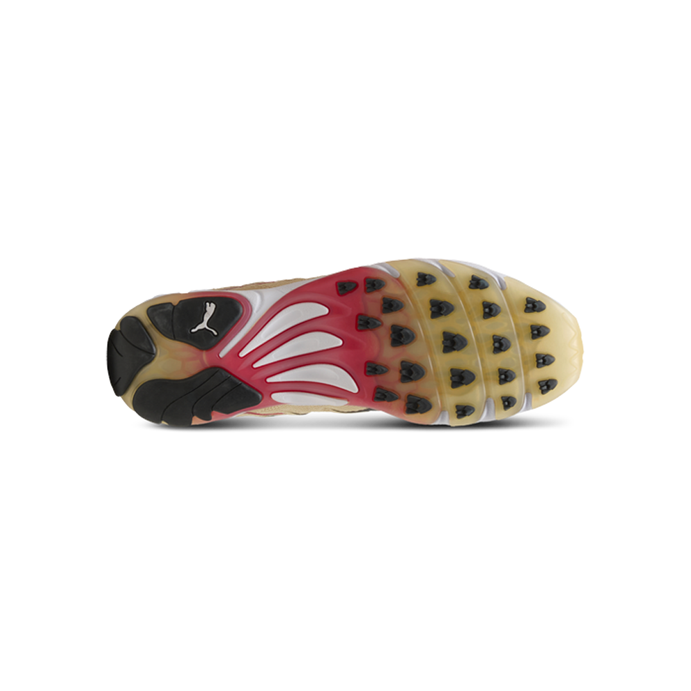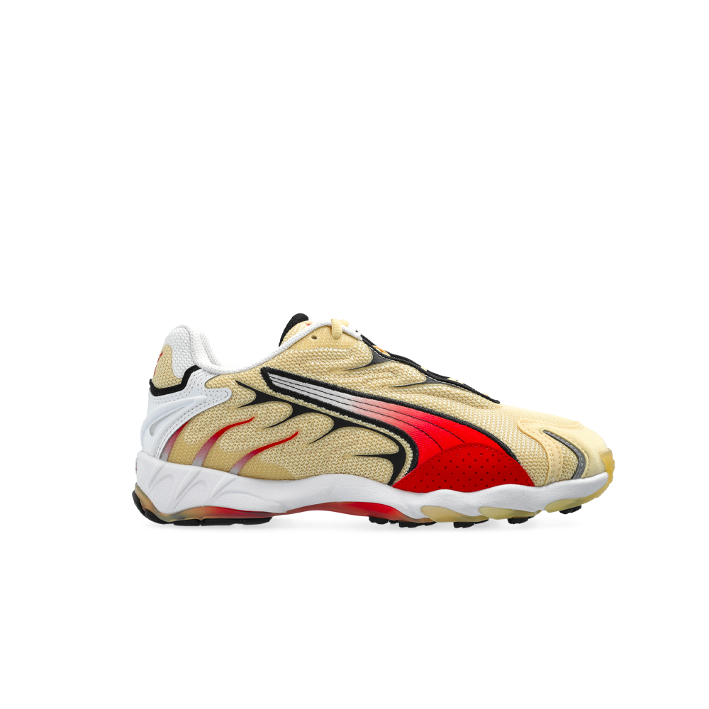 The original Puma Inhale launched in 2000 as a running shoe with bold, exaggerated contours and a chunky sole. Today, the iconic silhouette returns to the streetwear world with its extreme curves and aggressive DNA still intact. This rendition features a color gradient effect on the outsole and reflective details on the toe and heel.