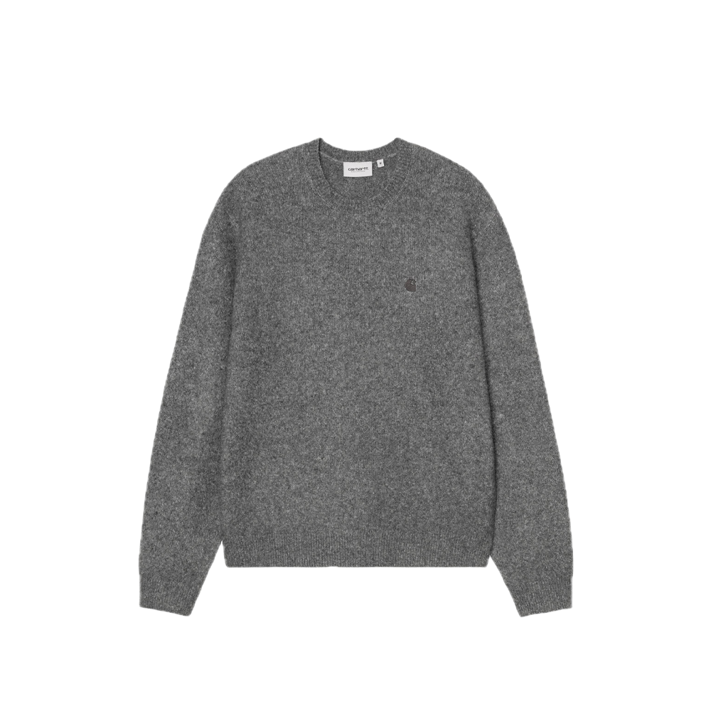 The Carhartt WIP Curtis sweater is crafted from a tactile blend of acrylic, recycled polyester, nylon, wool, and elastane. It features an embroidered “C” logo on the chest.