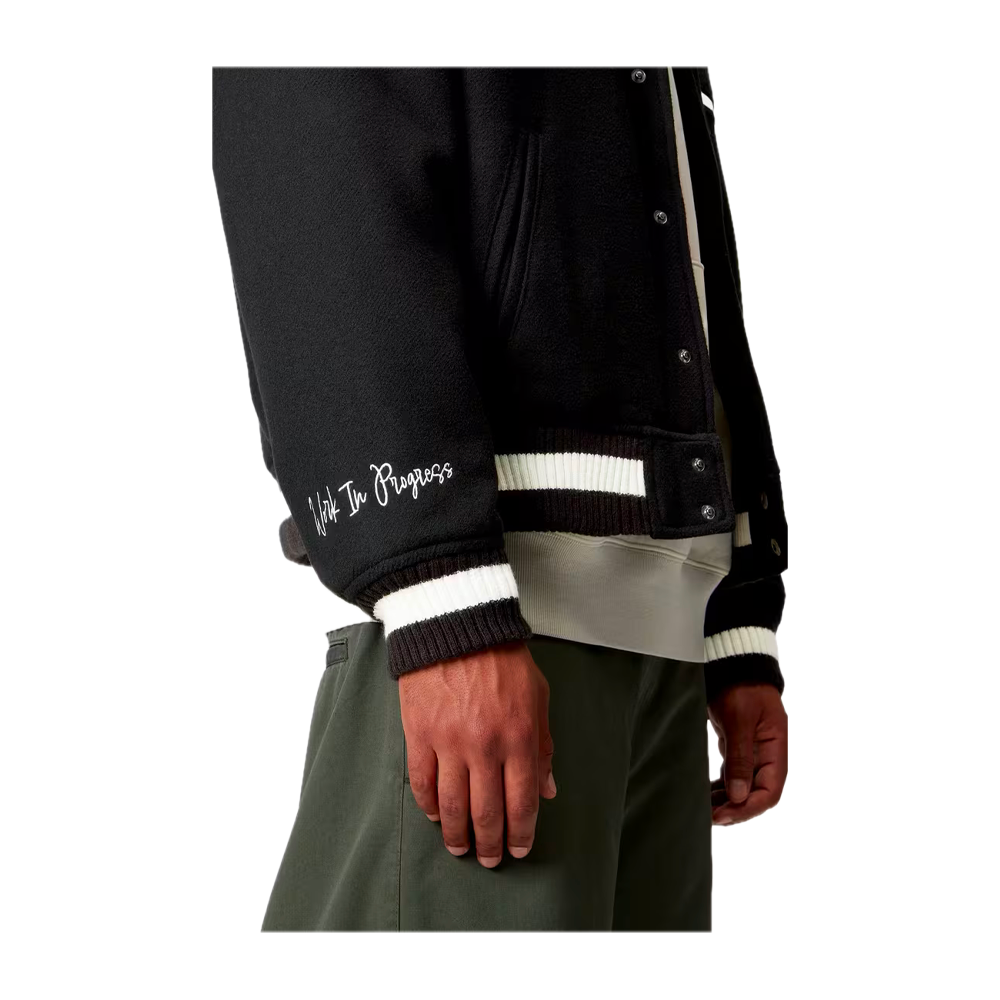 Il Carhartt WIP World Class Varsity è realizzato in feltro di lana pesante con fodera trapuntata a rombi. Presenta due tasche a filetto sul davanti e una tasca interna sul petto. Grafiche e toppe ricamate sono presenti su tutto il capo.