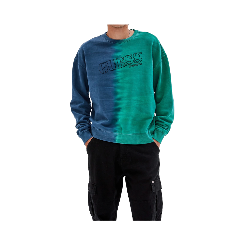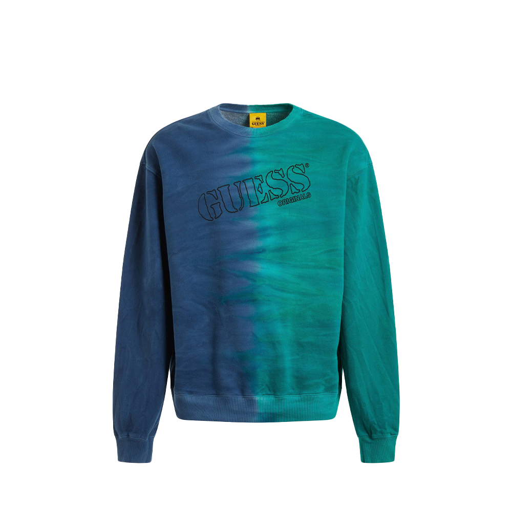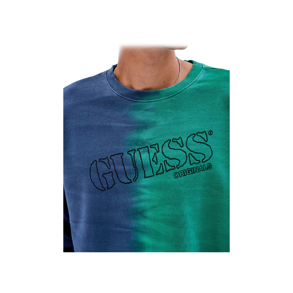 The Guess Originals X Batman sweatshirt is made of fleece and features a front and back water-based print and gradient color.