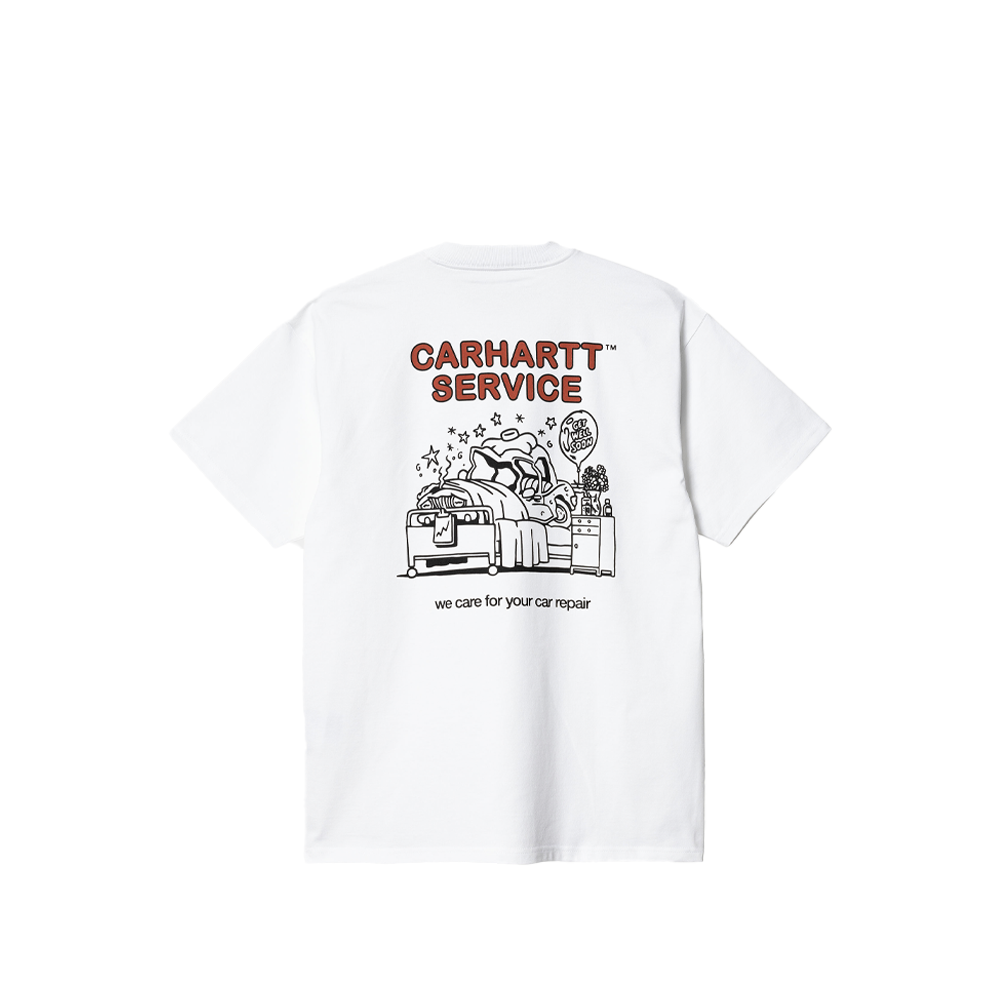 The Carhartt WIP S/S Car Repair T-Shirt is woven from midweight organic cotton jersey in a loose fit. Seasonal graphic prints appear on the chest and across the back.