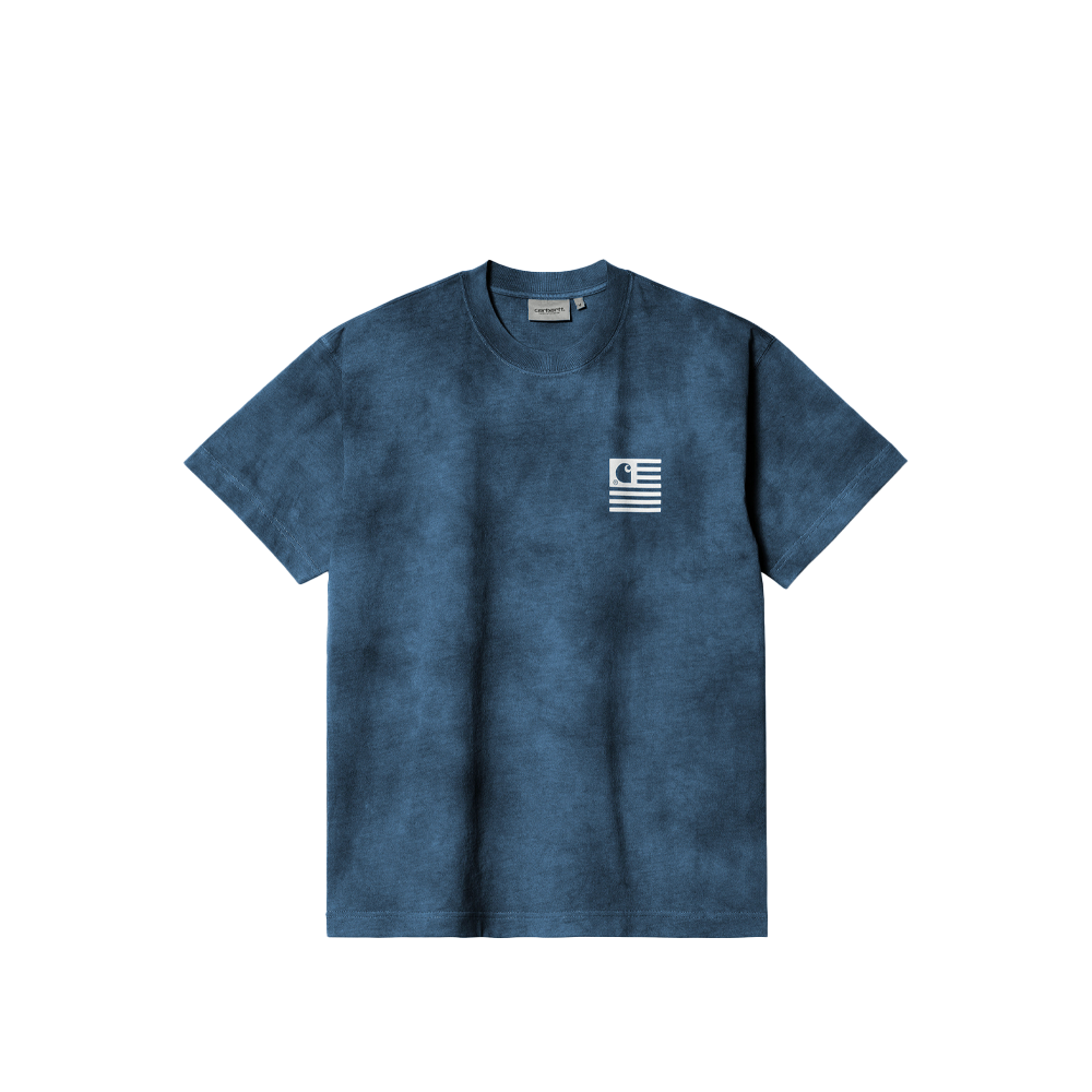 The Carhartt WIP S/S Chromo T-Shirt is made of midweight cotton jersey in a loose fit. It features an allover tie dye-inspired Chromo print and is detailed with a new take on the State Flag motif.