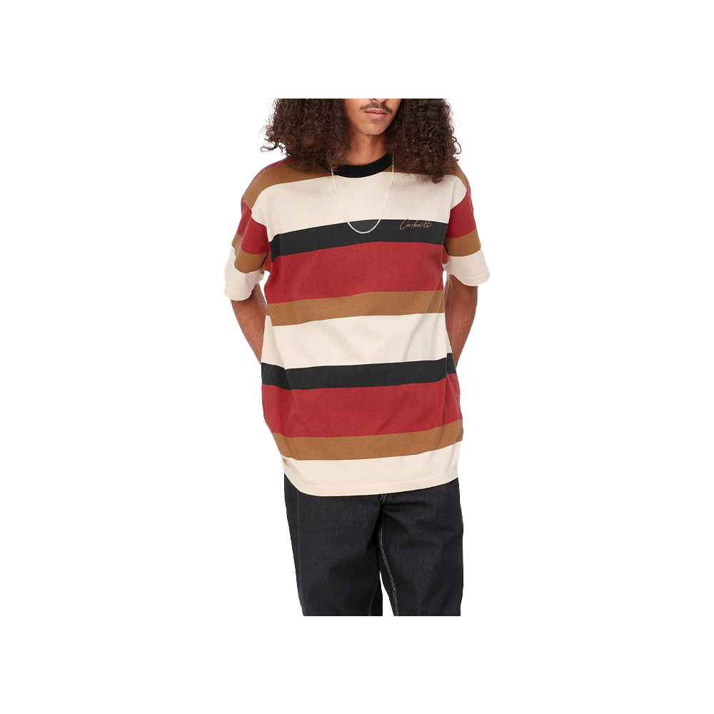 The Carhartt WIP S/S Crouser T-Shirt is made in a loose fit from organic cotton jersey. It is detailed with allover block stripes and has short sleeves. Embroidered graphic lettering appears on the chest.