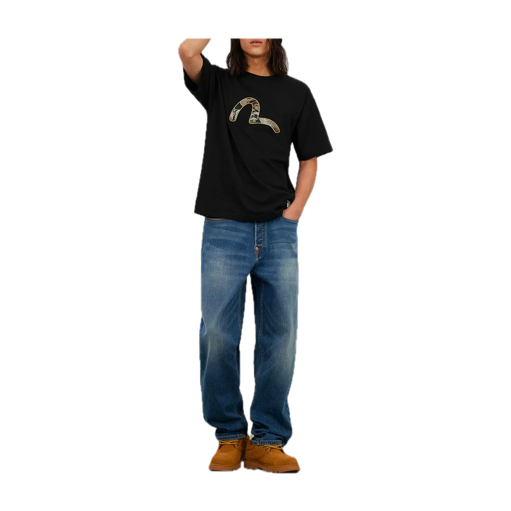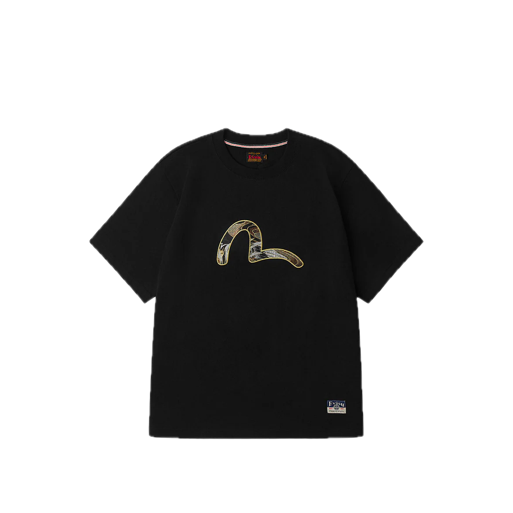 Evisu Brocade Seagull Appliqué Regular Fit Short Sleeves T-shirt Black 2EAHTM5TS1161XXCT
