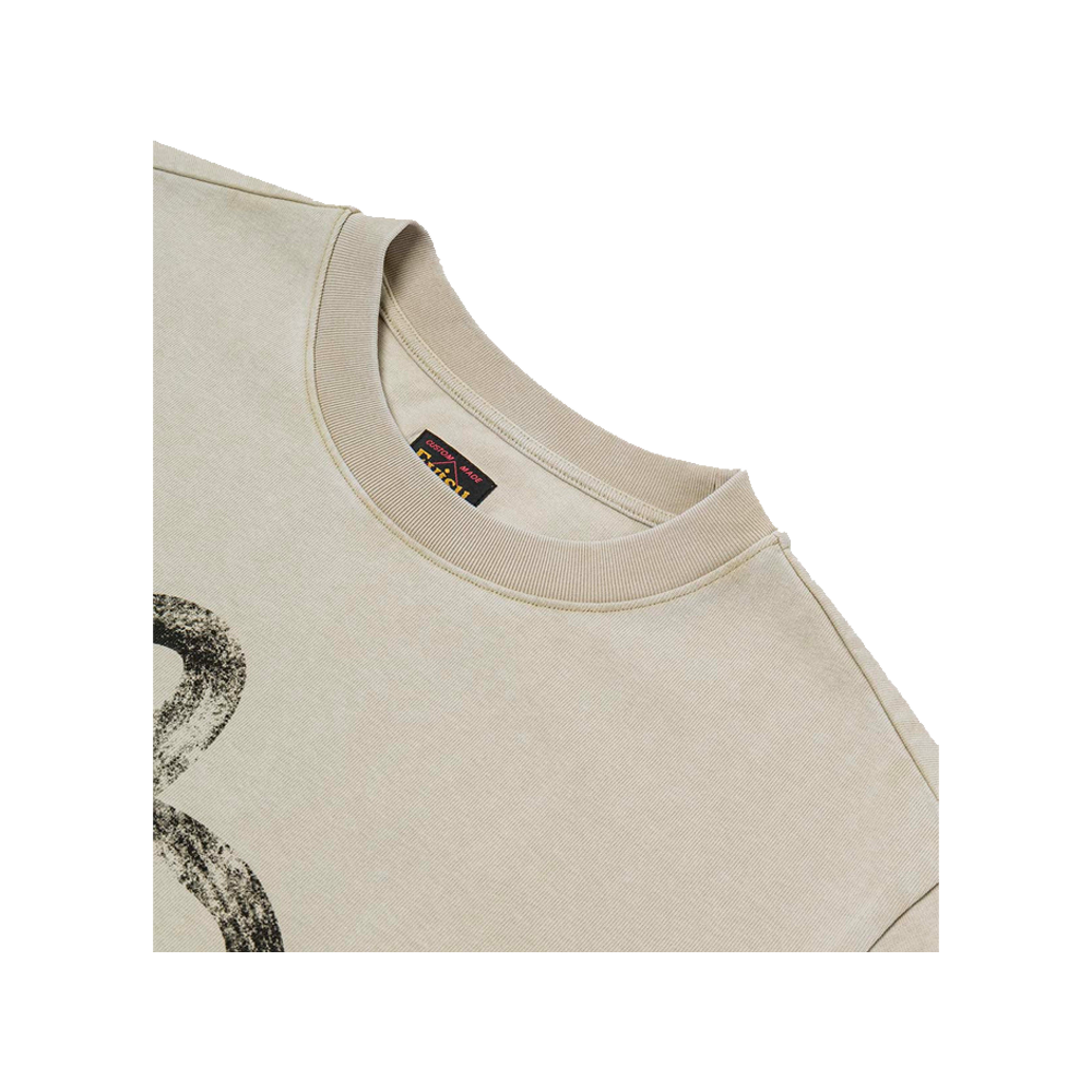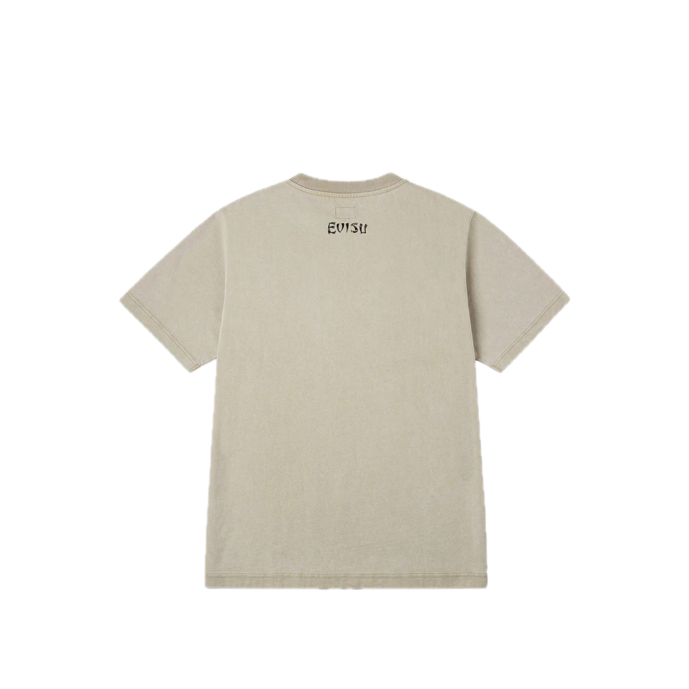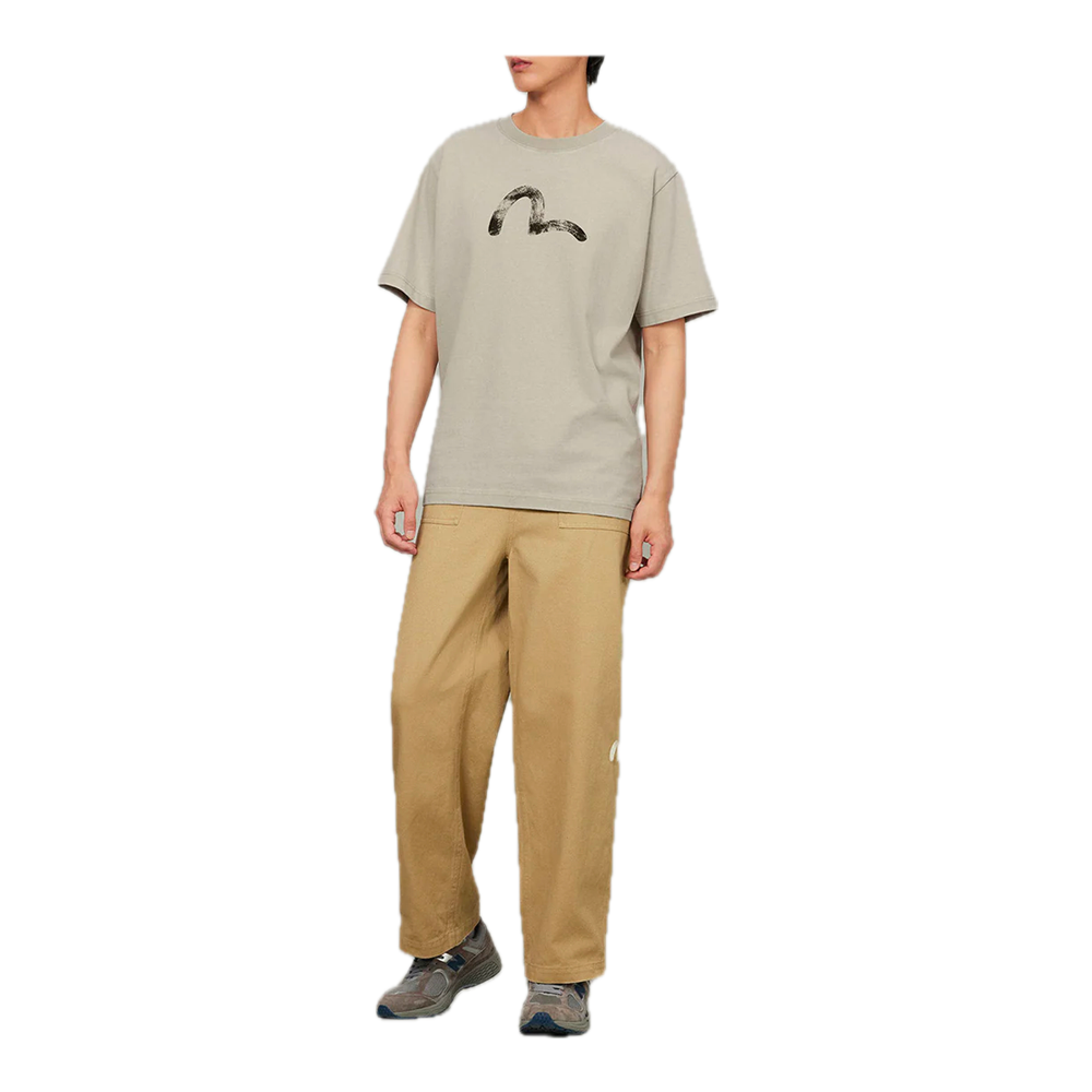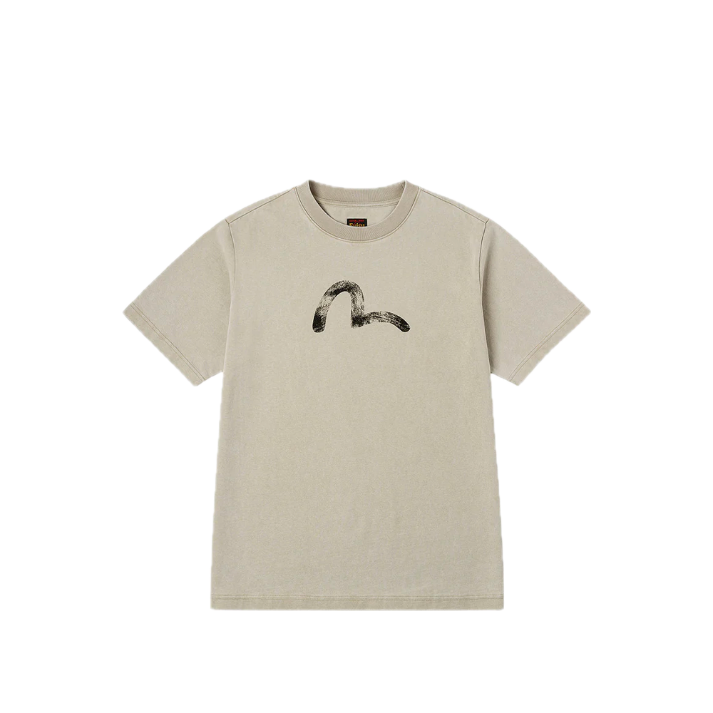 This Evisu T-shirt embraces minimalist elegance with a soft beige hue, exuding refined sophistication. The vivid, intricately detailed seagull hand-drawn print on the chest adds a distinctive artistic flair. Crafted with comfortable fabric and a classic cut, it’s a seamless blend of style and ease, perfect for everyday chic.