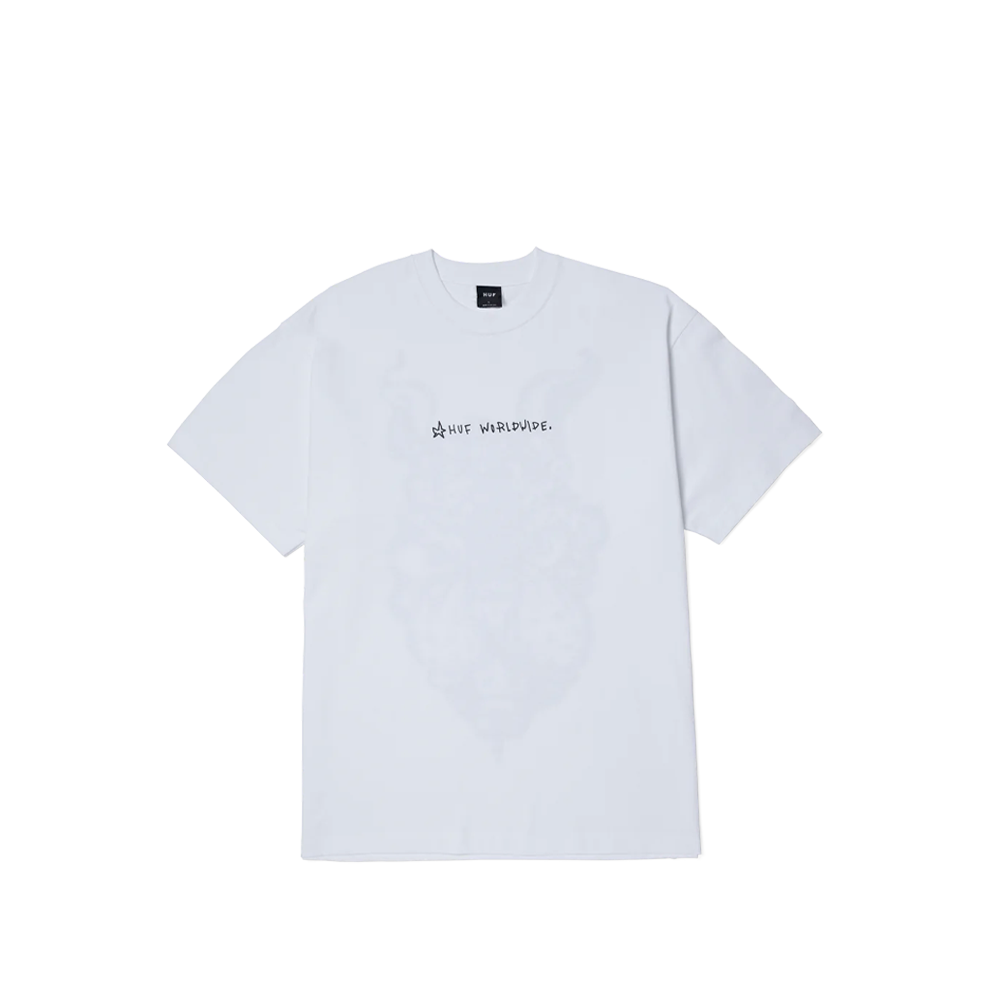 The HUF Ferrell Tee is a cotton short sleeve t-shirt with printed graphics on the front and on the back.