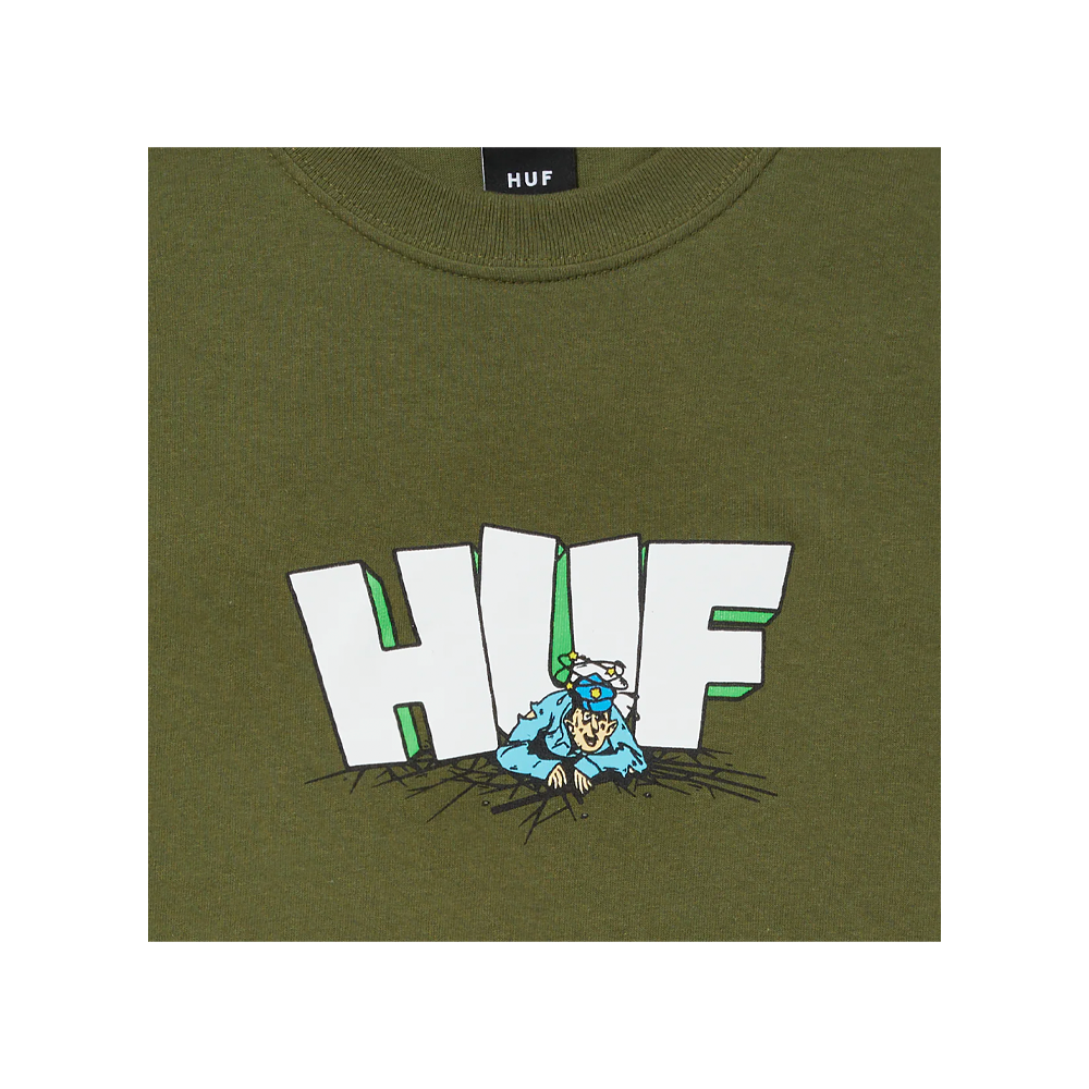 The HUF t-shirt presents puff printed artwork at front and HUF woven label at interior neck.