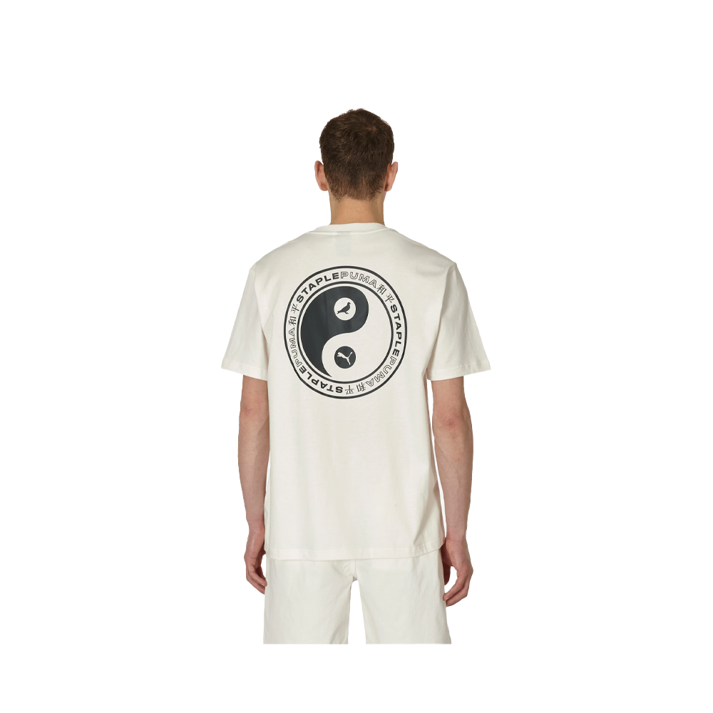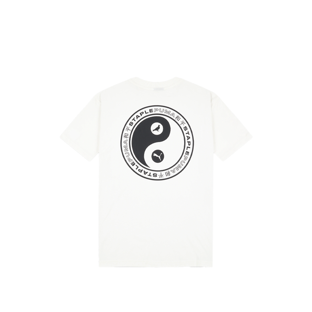 The latest PUMA x STAPLE collection is inspired by Gidra, a California newspaper founded in 1969 to give a strong voice to the Asian-American community during the American civil rights movement. The styles in the line combine Jeff Staple’s trademark clean, polished aesthetic with vibrant colors and graphics that pay homage to Asian-American history. This T-shirt is no exception, adorned with a rubberised yin-yang symbol print on the back, incorporating the STAPLE pigeon and PUMA Cat.