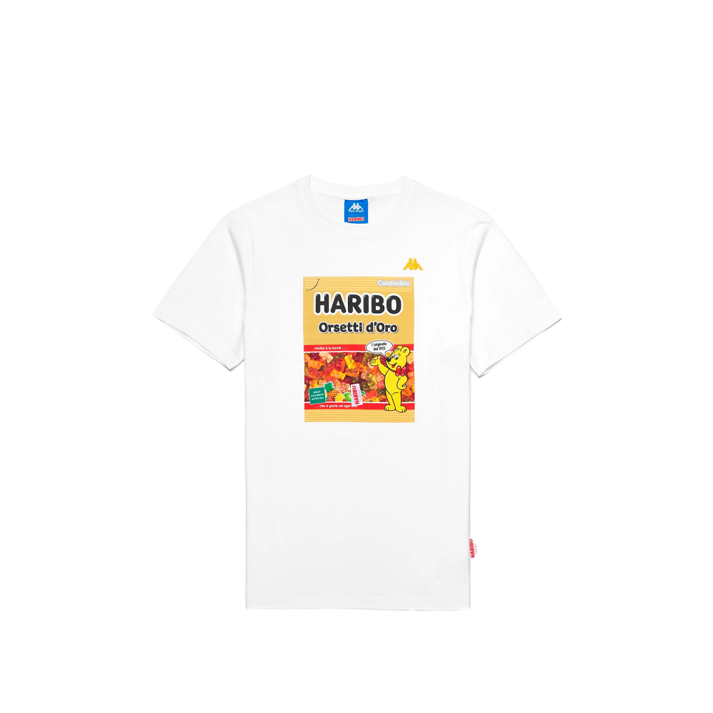 KAPPA men’s t-shirt in cotton jersey. SLIM FIT. Short sleeves with print on the chest. Omini logo applied on the chest, HARIBO customizations