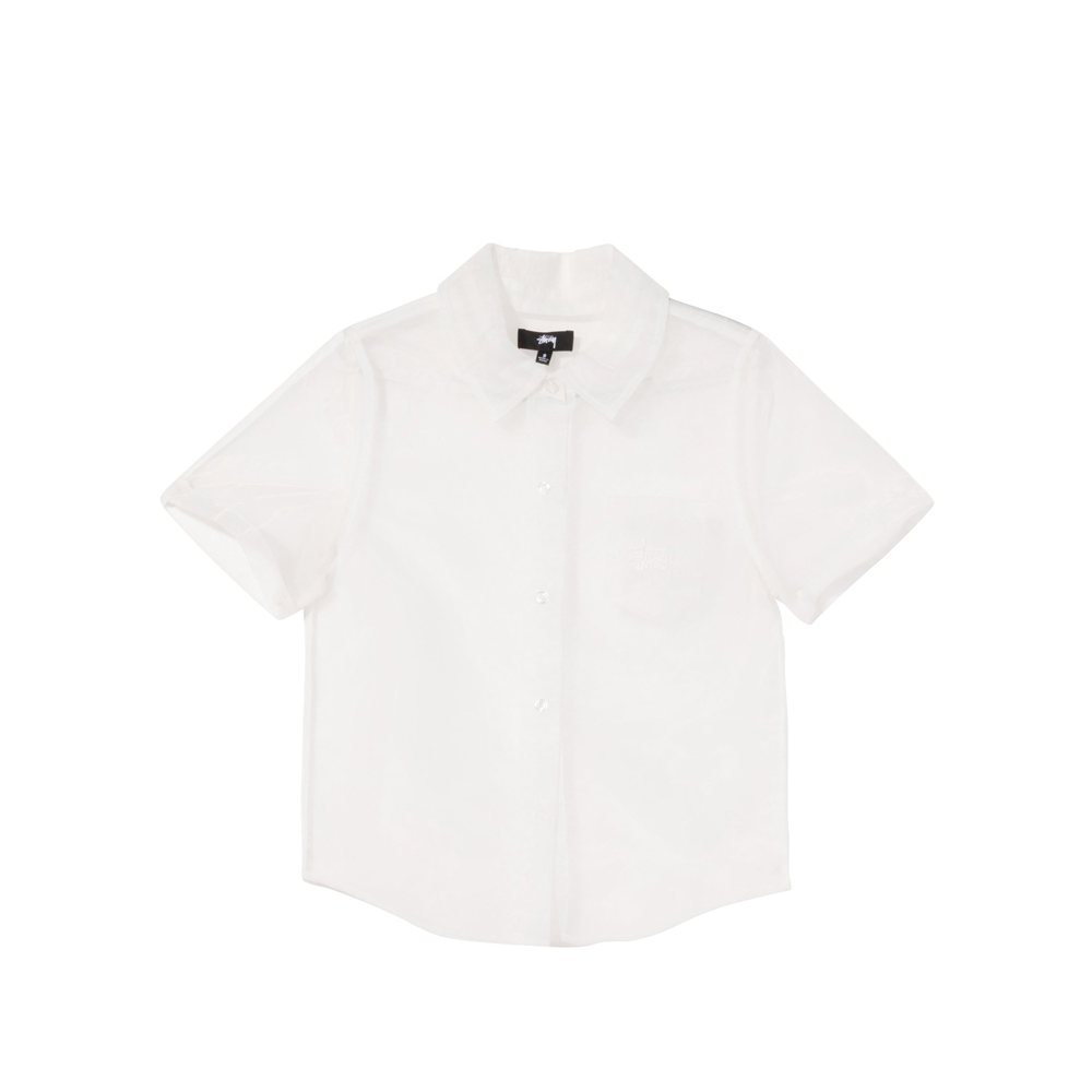 Camicia trasparente a maniche corte con logo Stussy ricamato sul taschino. Chiusura con 5 bottoni e orlo smerlato.