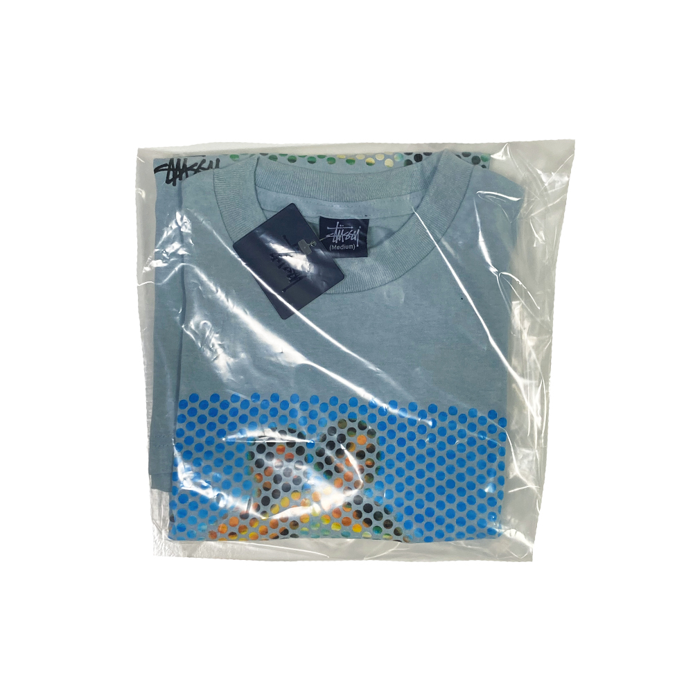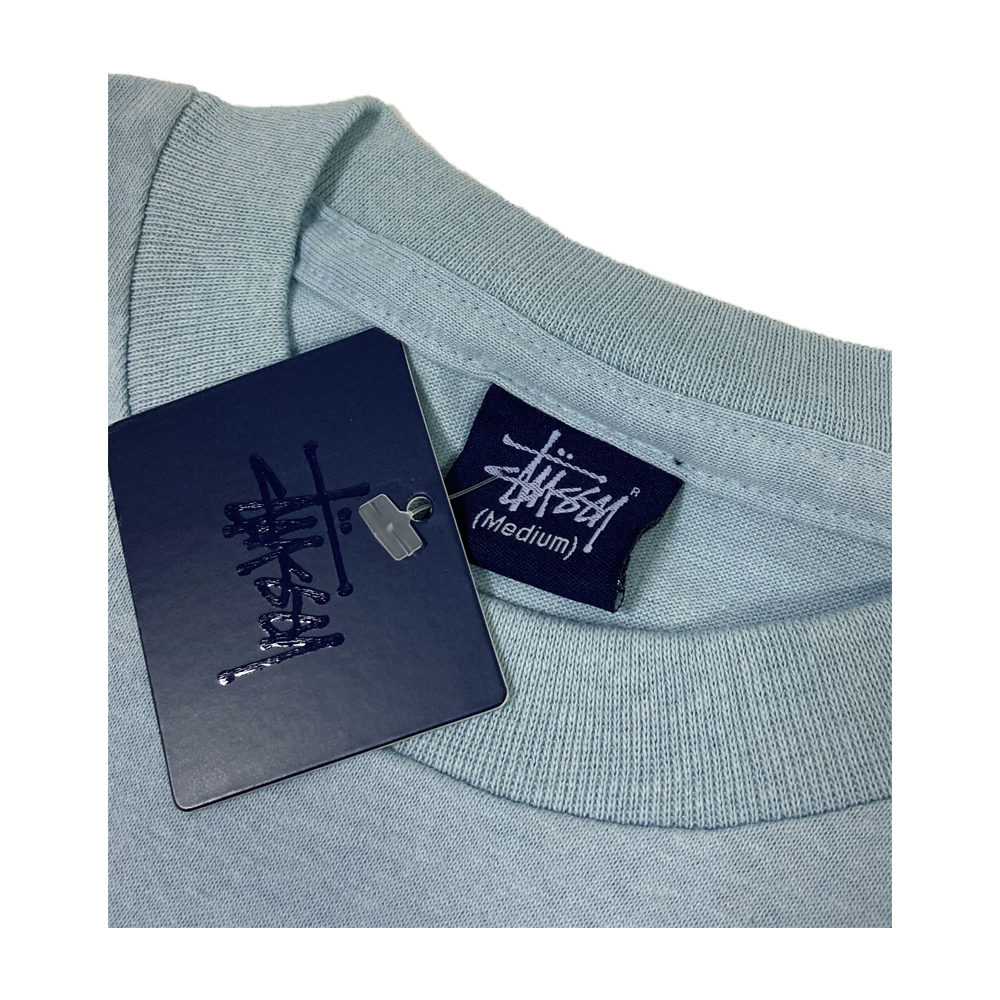 Stussy T-shirt featuring a front print with two surfers in full Californian style.