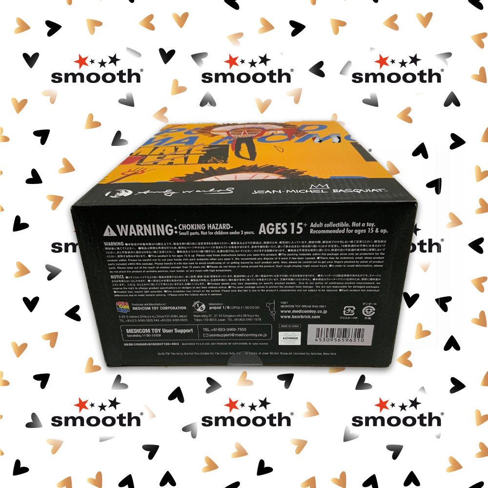 Basato sul dipinto collaborativo “Plug Pulled on Coma Mom“, questo terzo episodio giallo brillante di Andy Warhol x Jean-Michel Basquiat è un’opera d’arte e un must! Medicom Toy utilizza la tecnologia di trasferimento dell’acqua per garantire un posizionamento di stampa unico su ogni Be@rbrick,, rendendoli tutti leggermente diversi.