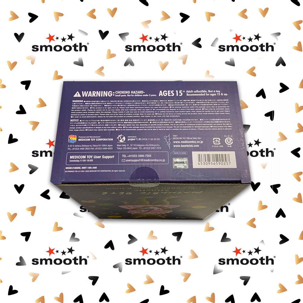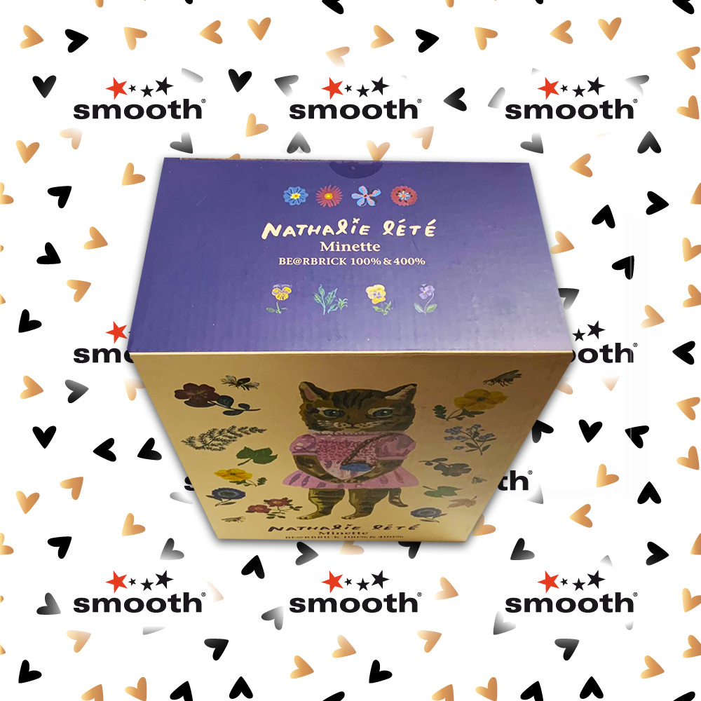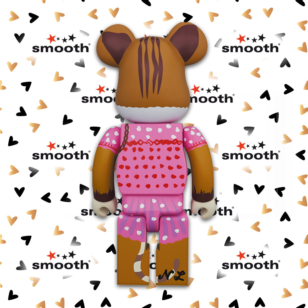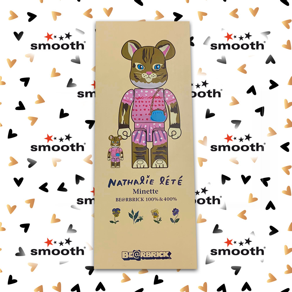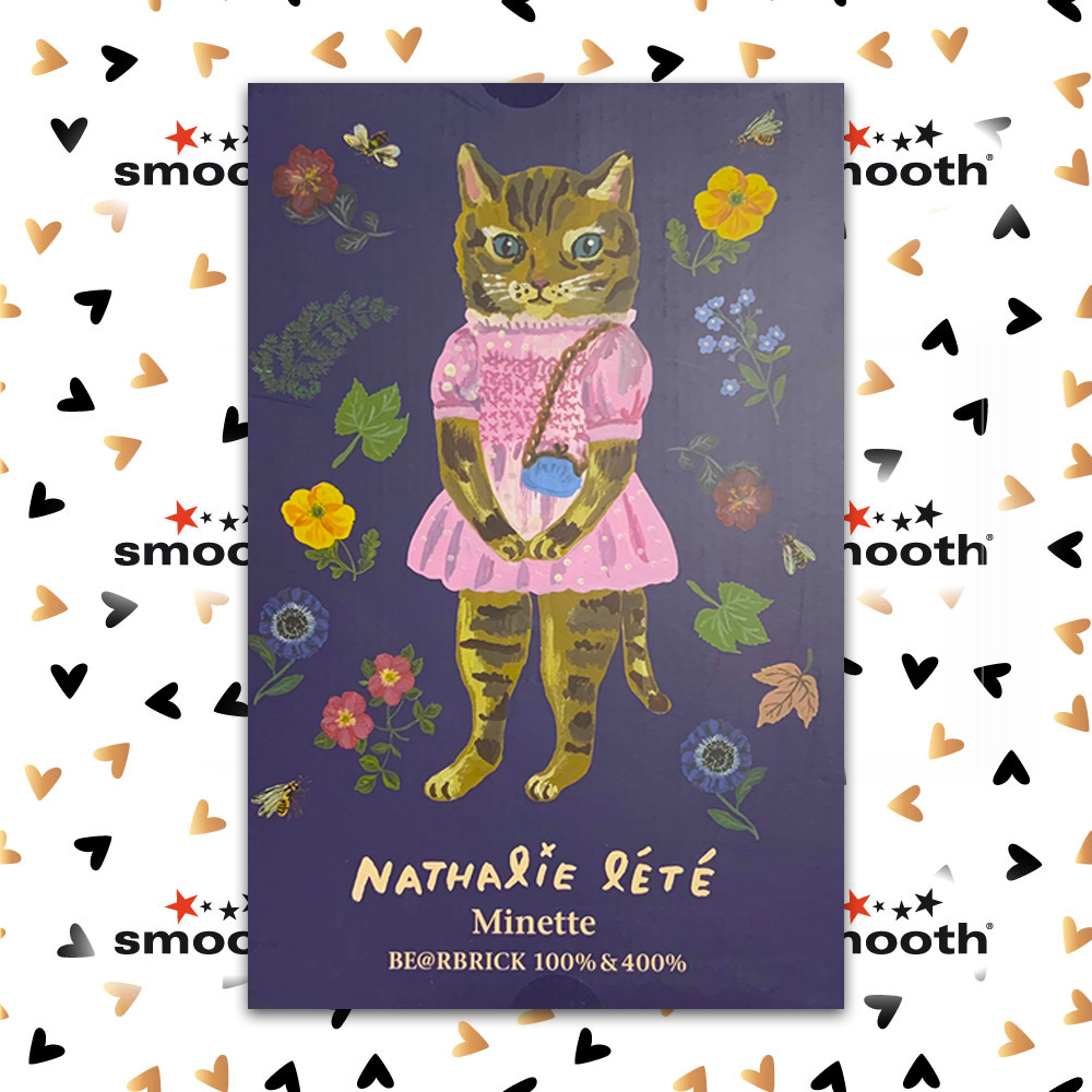 Minette incarna lo stile artistico di Nathalie Lété e ogni dettaglio di questo Be@rbrick non è trascurato. Dagli occhi azzurri al vestito fantasia fino alla coda stesa sul retro di entrambe le gambe del Be@rbrick.