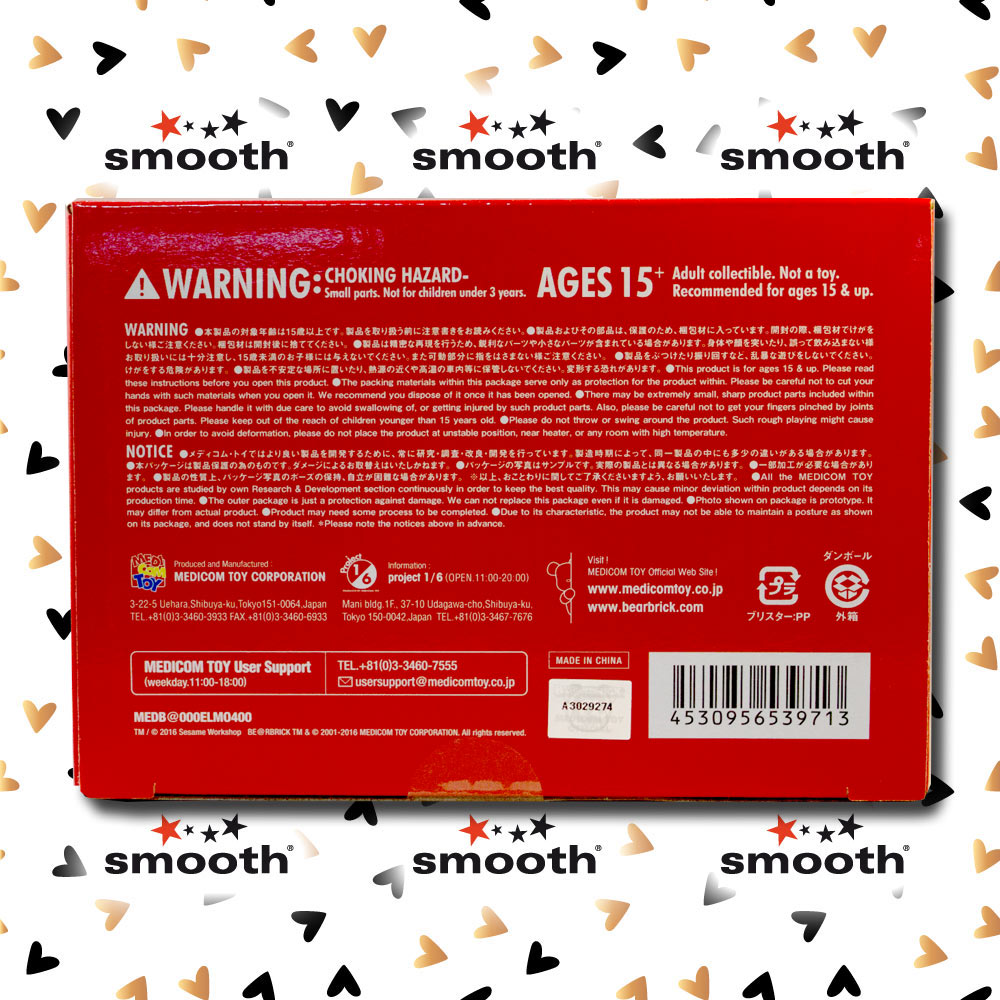 Fin dagli inizi Medicom Toy ha cambiato l’aspetto dei suoi Be@rbrick per trasformarli in personaggi Pop. Nell’agosto del 2016 l’inconfondibile silhouette d’orso indossa le sembianze di uno dei personaggi più famosi. Il rosso vivo di questa release può significare solo una cosa, questa volta Be@rbrick diventa uno dei personaggi più famosi di Sesame Street; Elmo. Fai una passeggiata per Sesame Street con Elmo! L’adorabile piccoletto è stato immortalato nel famoso formato Bearbrick 400%.