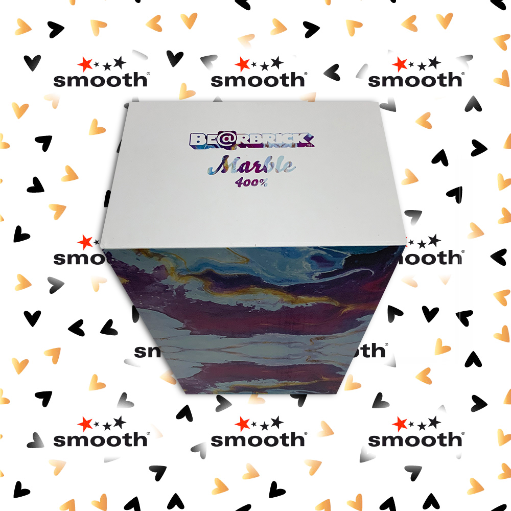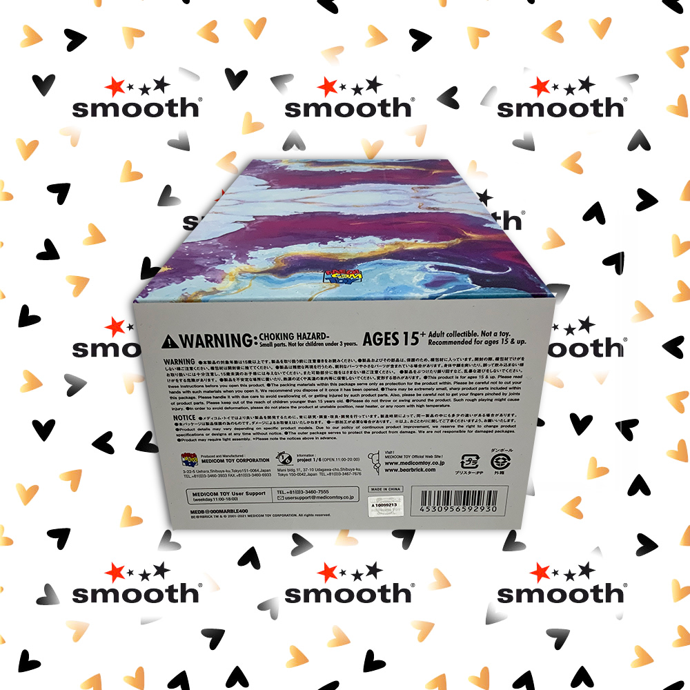 Medicom Toy proudly presents this Be@rbrick, a new edition that shows a beautiful motif made with the technique of water transfer. All Be@rbrick’s Marble 400% are unique and different, as this drawing technique does not allow to reproduce two identical pieces.