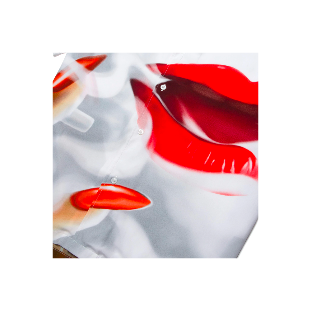Un cenno alle abbottonature vintage delle vacanze, la maglia a maniche corte Seductive Resort è realizzata in rayon setoso con opere d’arte all-over ispirate ai film degli anni ’80. Sormontata da un colletto da campo casual, l’abbottonatura è rifinita con spacchetti di spacco sulle cuciture laterali dell’orlo.